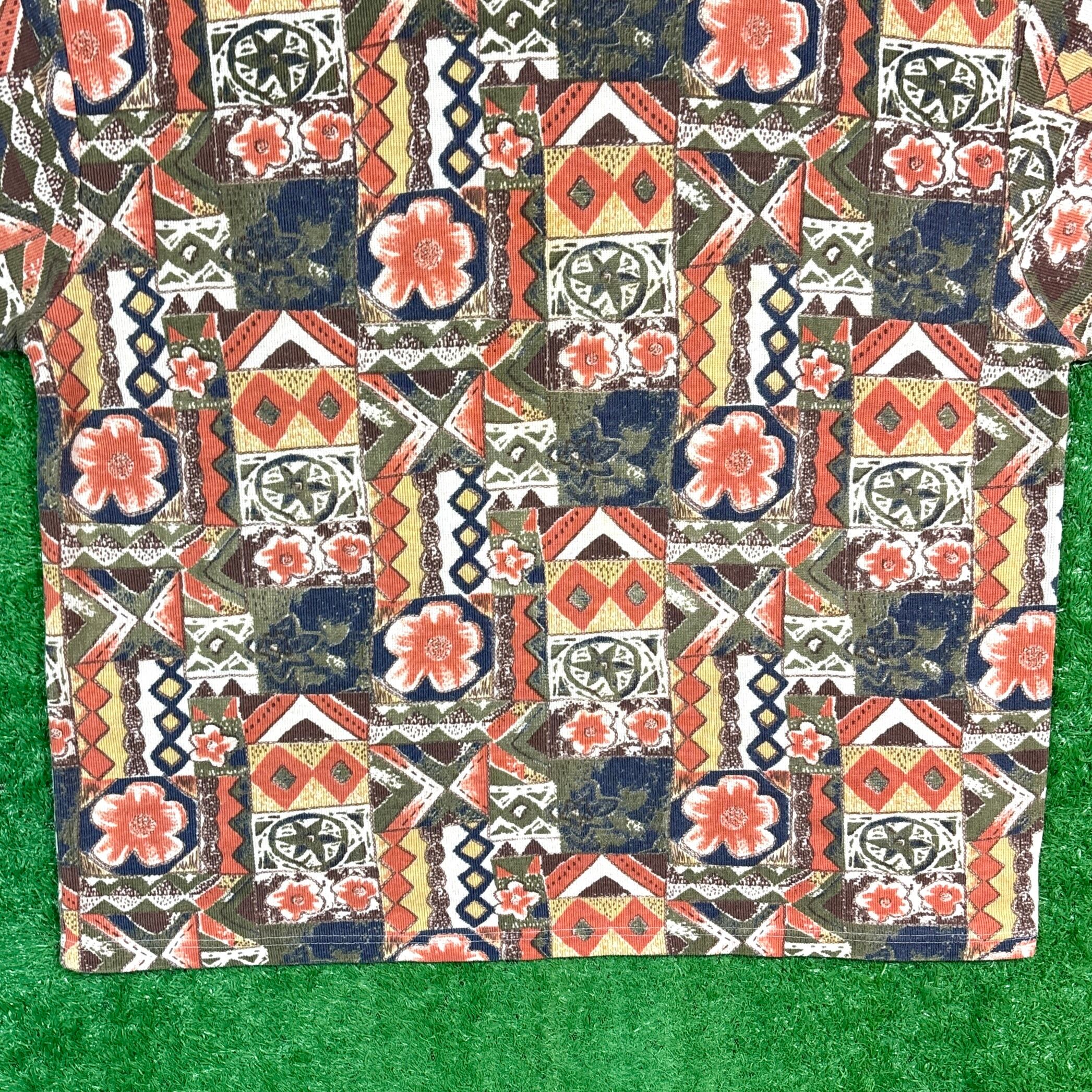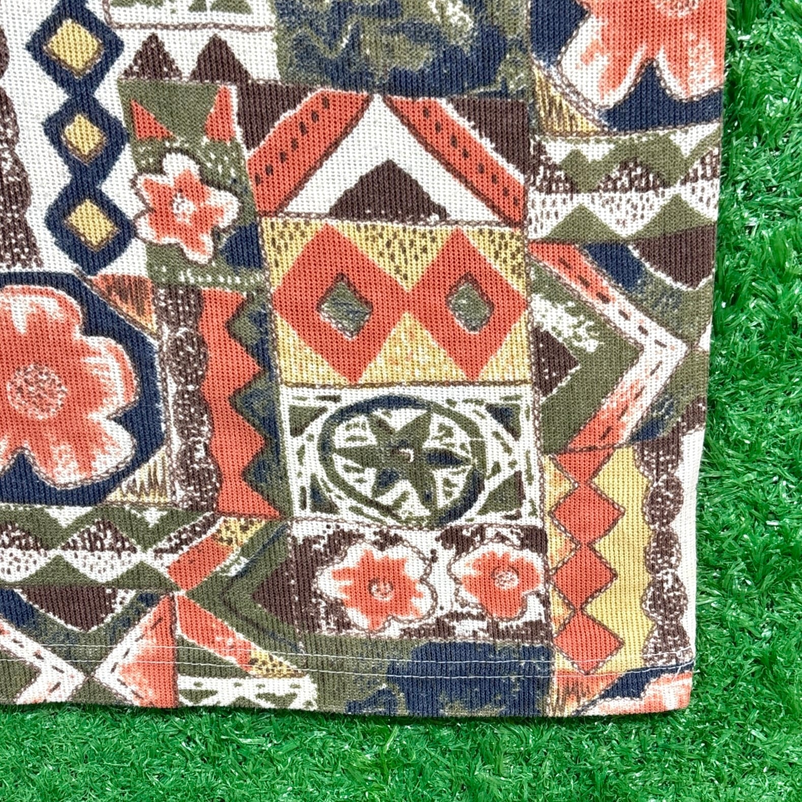 【Unisex】 90s ネイティブ柄 デザイン トップス / 90年代 古着 総柄 Tシャツ ティーシャツ T-Shirts 夏 サマーニット 228