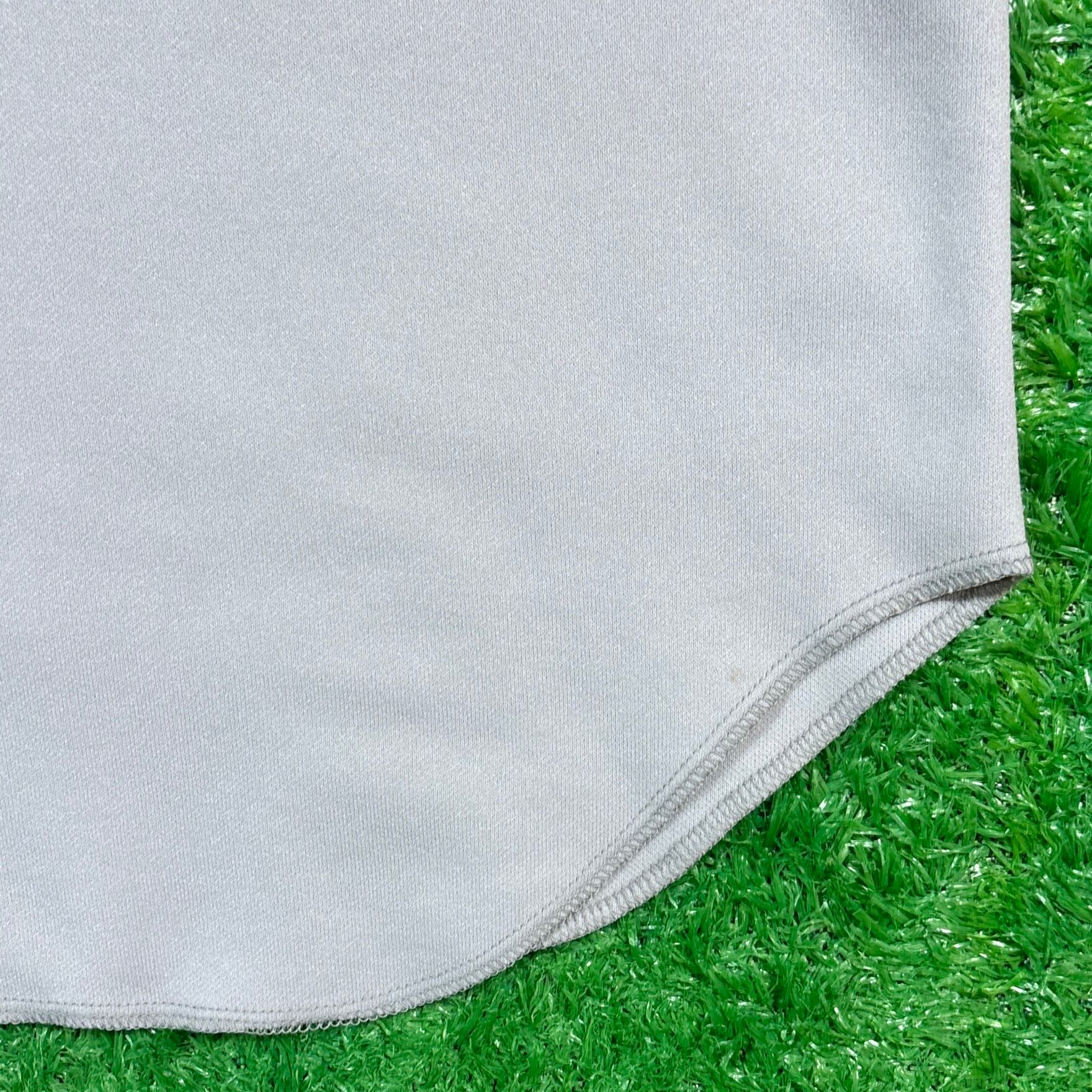 「Q&T Plate Sales」のチーム名がフロントに、背面には「12」のナンバリングが入ったクラシックなデザイン。グレーボディに赤いリブラインが映える配色で、スポーツユニフォームらしい雰囲気が魅力です。キッズLサイズながら、大人の女性がミニT感覚で着られる絶妙なコンパクトシルエットもポイント。スポーツミックスやストリートスタイルにぴったりな1枚です。