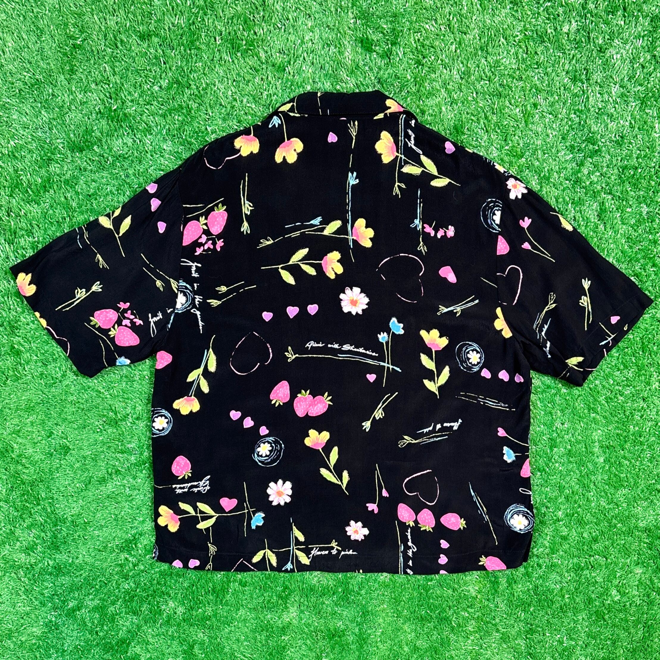 【Lady's】 80s 花柄 レーヨン 開襟シャツ / アメリカ製 USA製 半袖 シャツ 開襟 黒 総柄 柄シャツ レディース 夏 240