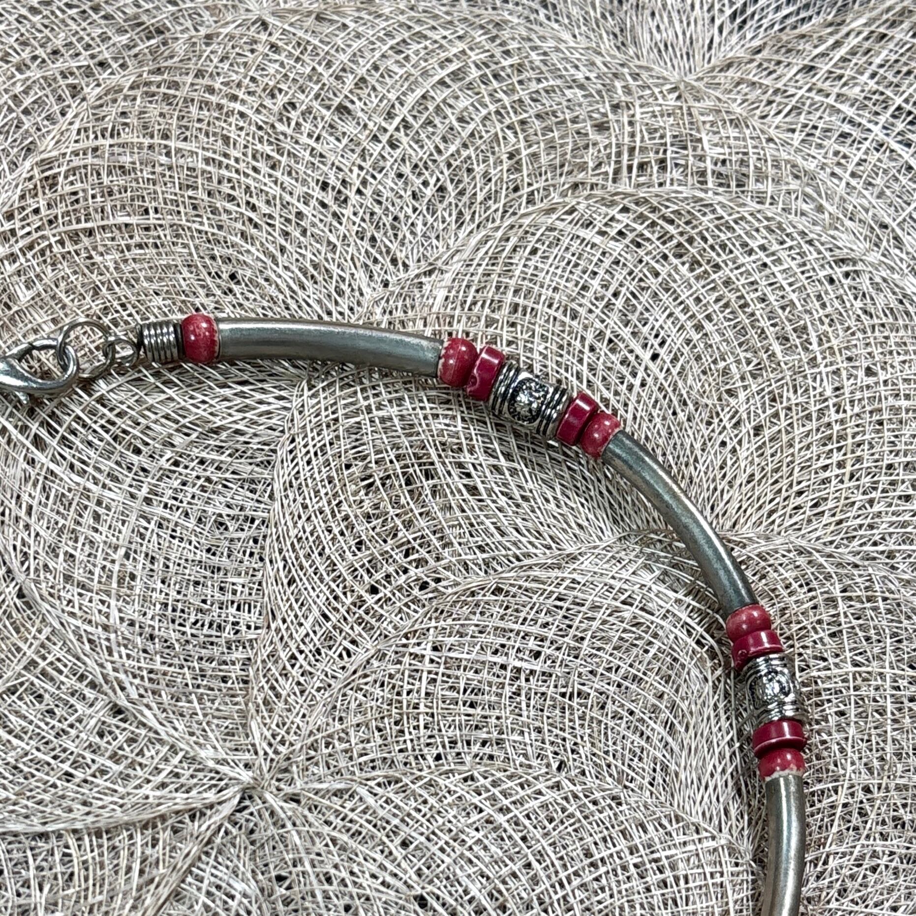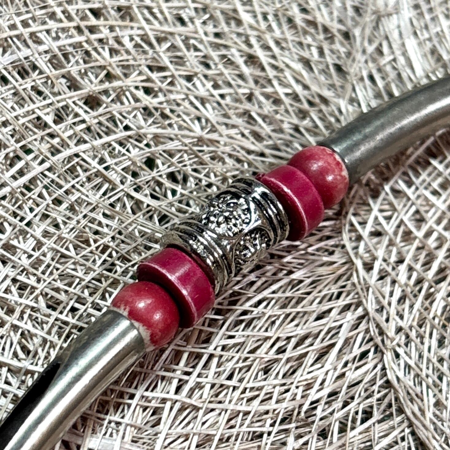 首元にフィットする短めのチョーカータイプで、スタイルのアクセントにぴったりです。ユニセックスで使える、古着スタイルやパンク・モード系ファッションに相性の良いアイテムです。