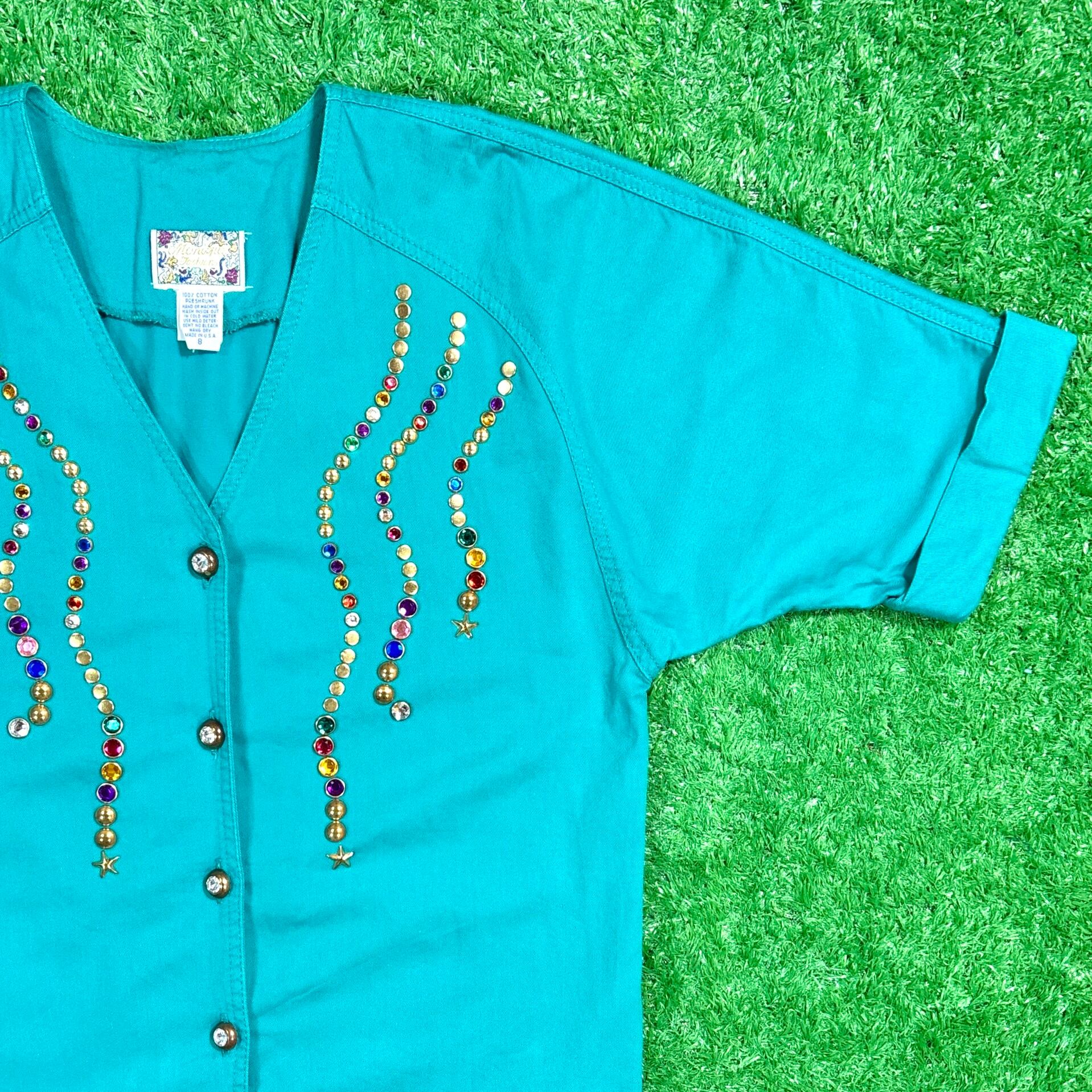 1980年代のアメリカ製、ビジュー装飾が華やかな半袖シャツジャケットです。