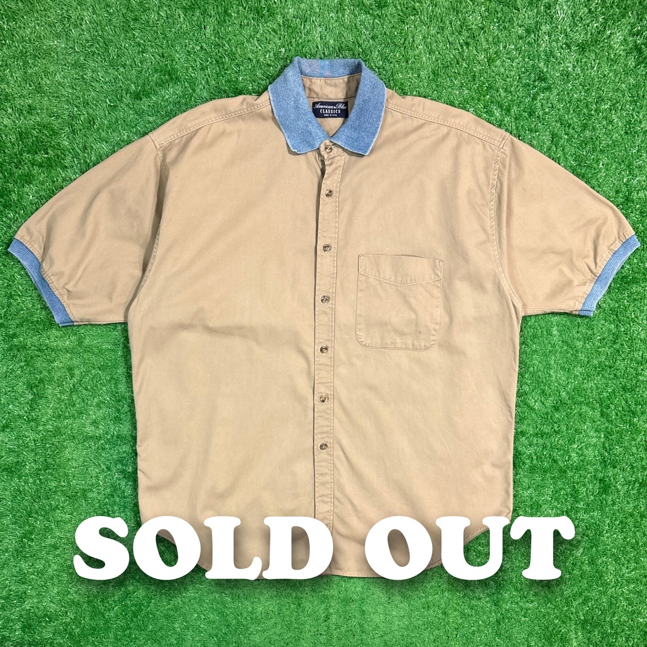 【Men's】 90s リブ付き 半袖 シャツ / アメリカ製 USA製 ベージュ メンズ 夏 古着 307