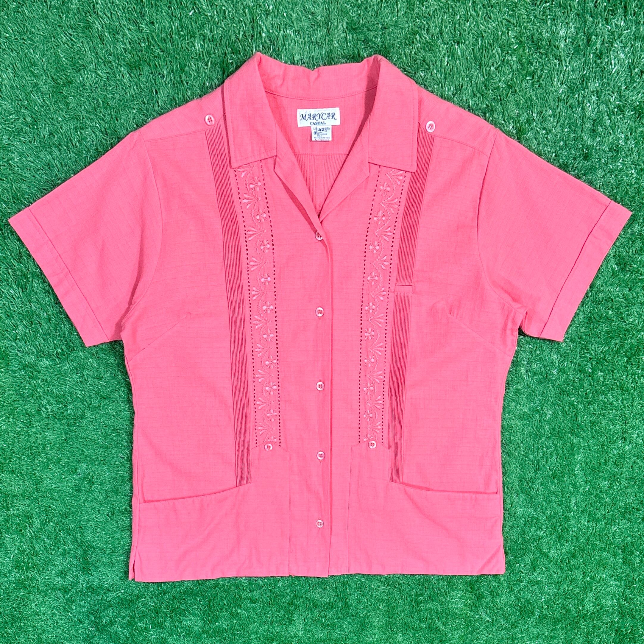 【Lady's】 90s - 00s リネン キューバシャツ / メキシコ製 半袖 シャツ 開襟 ピンク 古着 レディース 夏 317