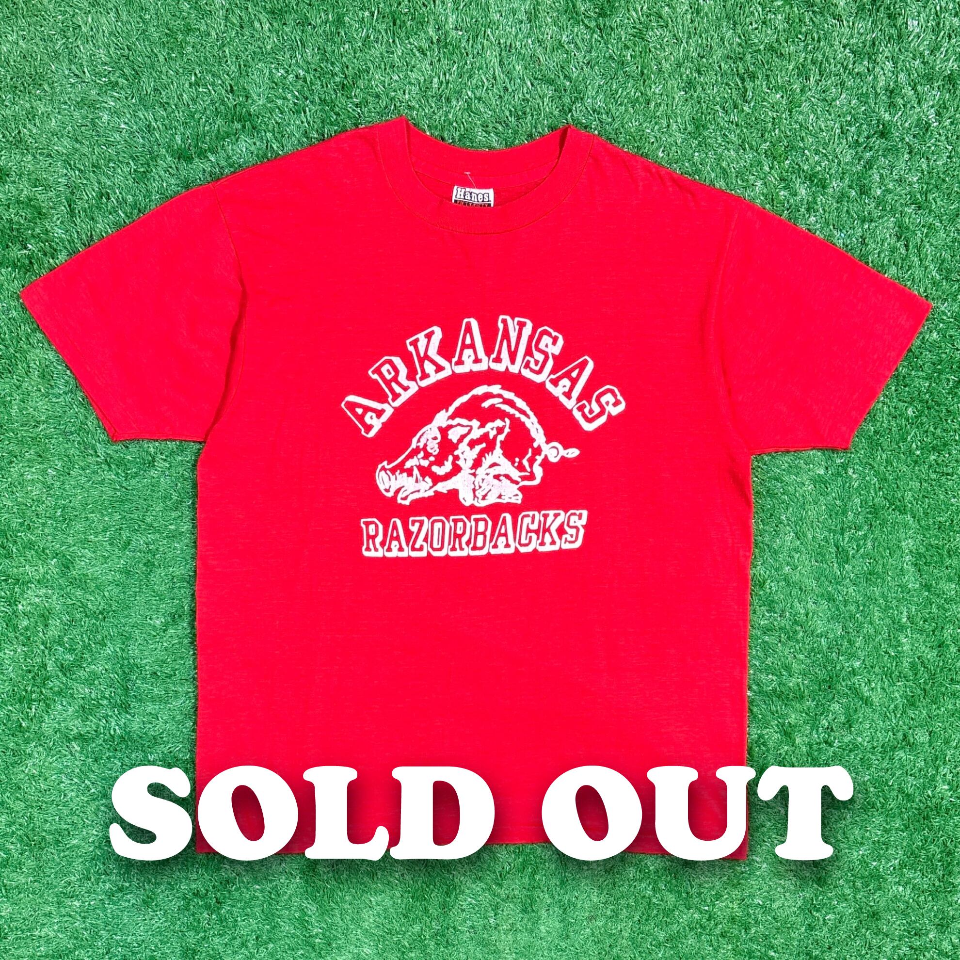 【Men's】 70s - 80s ARKANSAS RAZORBACKS カレッジ Tシャツ / アメリカ製 USA製 ティーシャツ T-Shirts 古着 赤 シングルステッチ 70年代 80年代 331