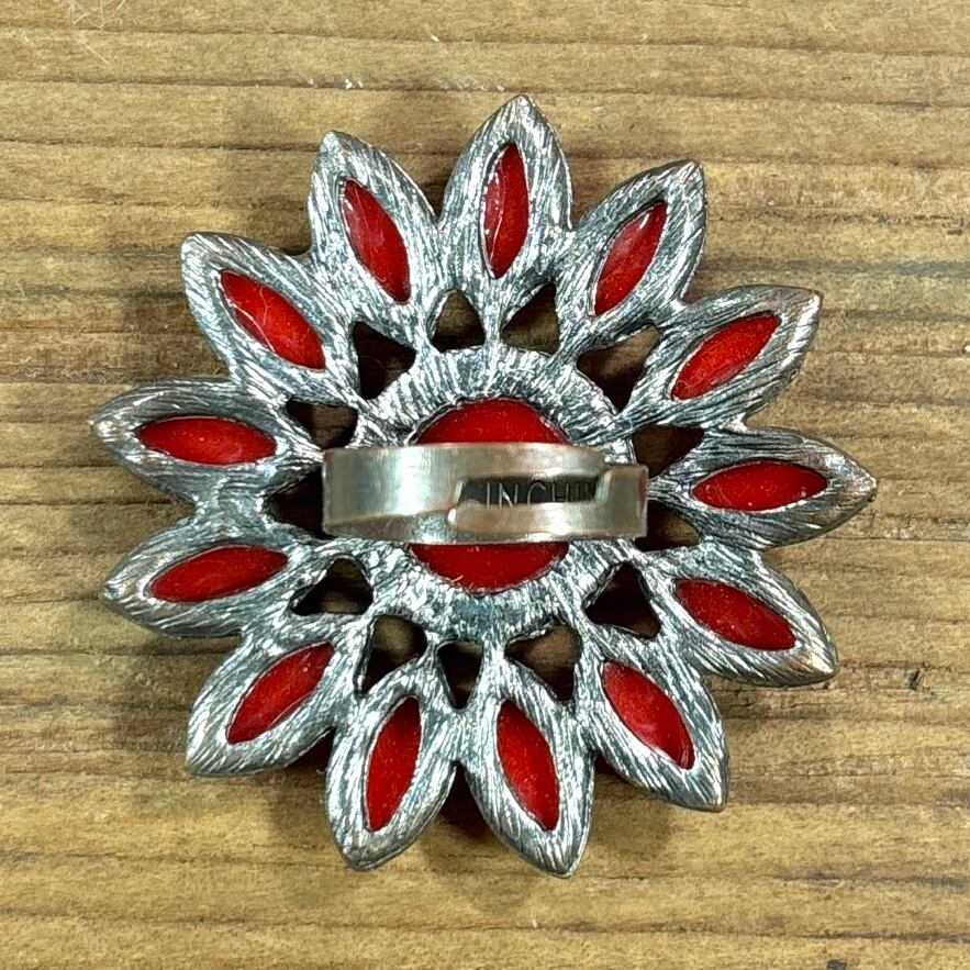 花のようなデザインが印象的なフラワーモチーフのリングです。中央には丸いストーン、周囲にはオーバル型のストーンが花びらのように並び、レトロで存在感のあるデザインに仕上がっています。金属部分はシルバーカラーで、ややざらっとしたアンティーク風の質感です。