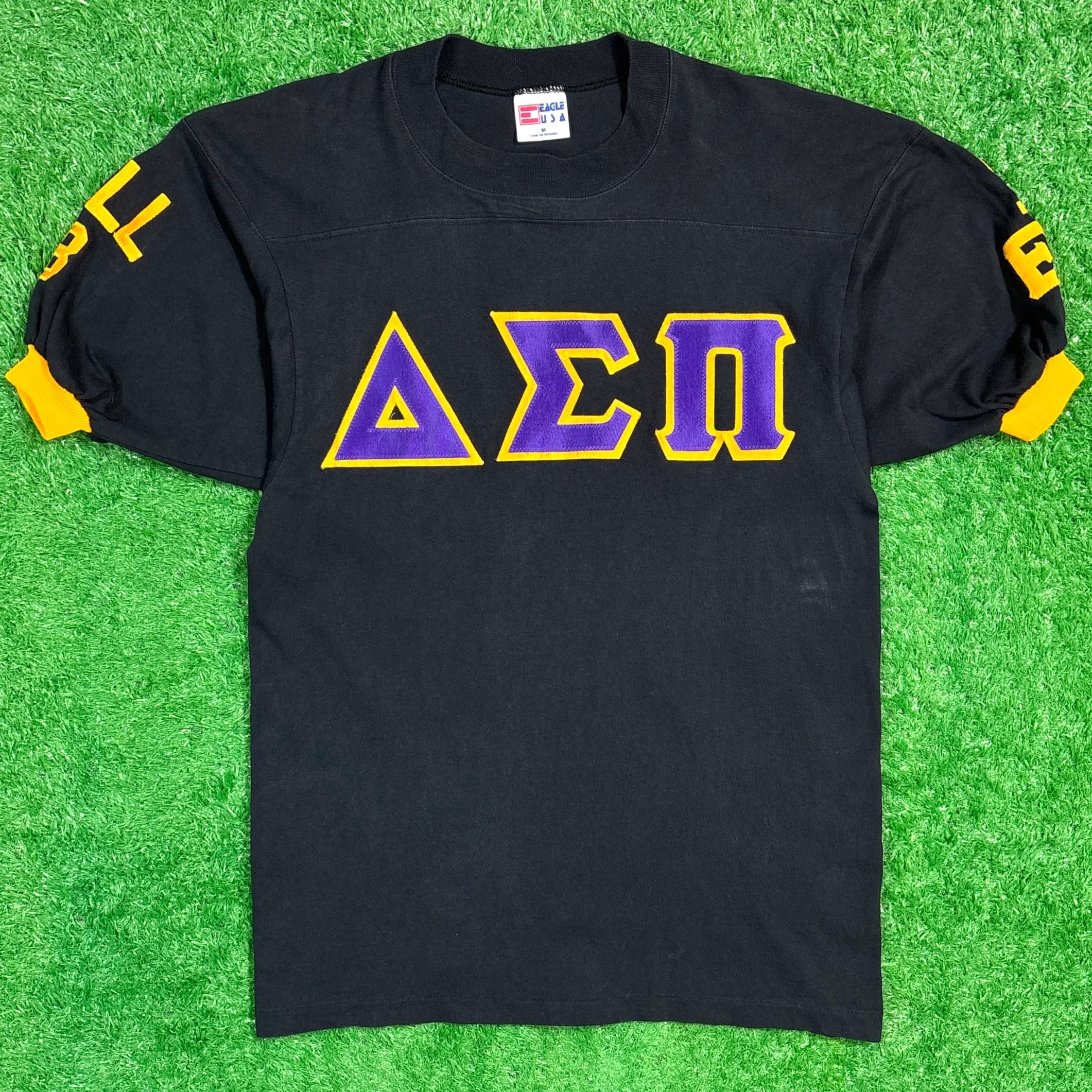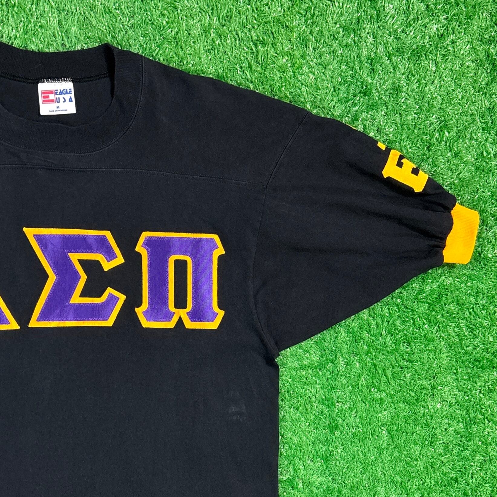 【Men's】 90s ΔΣΠ ギリシャ文字 フットボール Tシャツ / アメリカ製 USA製 ティーシャツ T-Shirts 90年代 フラタニティ ユニフォーム風 359