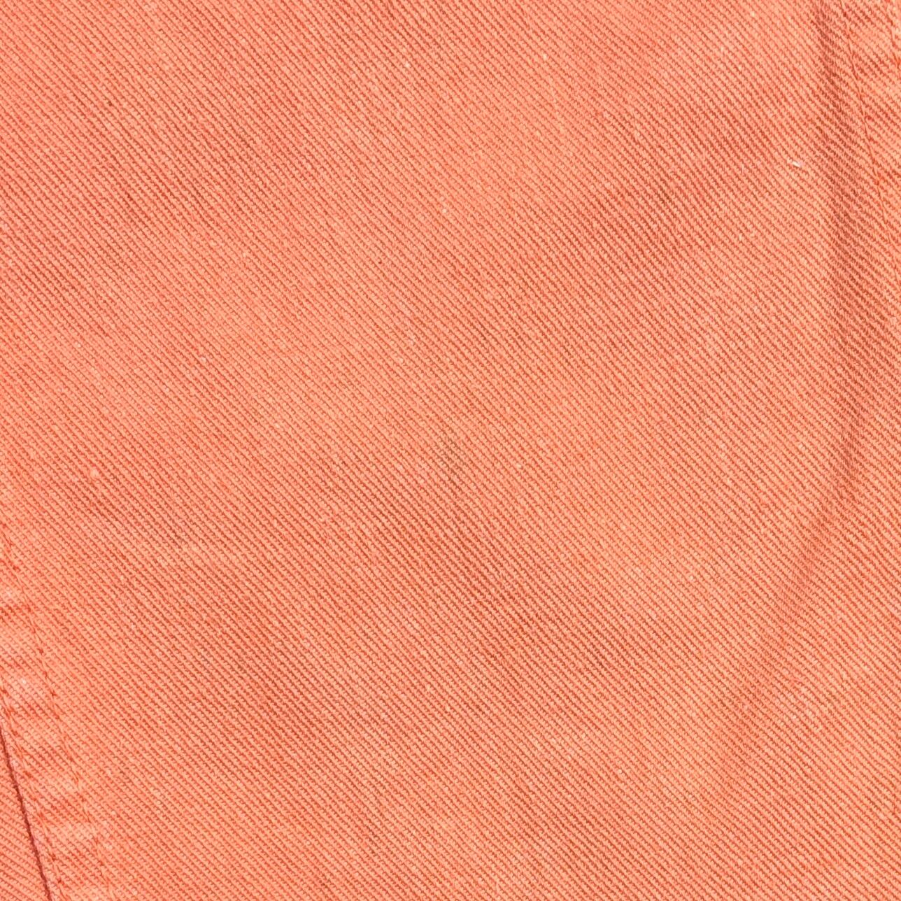 鮮やかなオレンジカラーが印象的な一本で。バックポケットにはラングラーのパッチも残っており、当時のディテールがしっかり楽しめます。テーパードが効いたシルエットで、レトロな雰囲気と今っぽさをあわせ持つアイテムです。