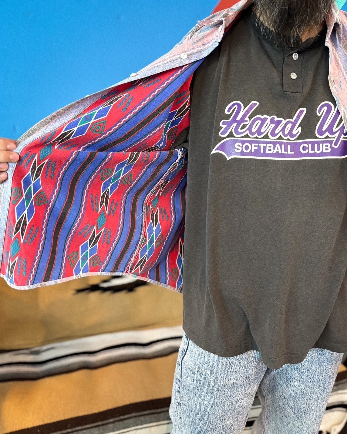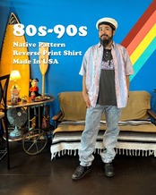 1980〜90年代のアメリカ製、ネイティブ柄のリバースプリントシャツです。