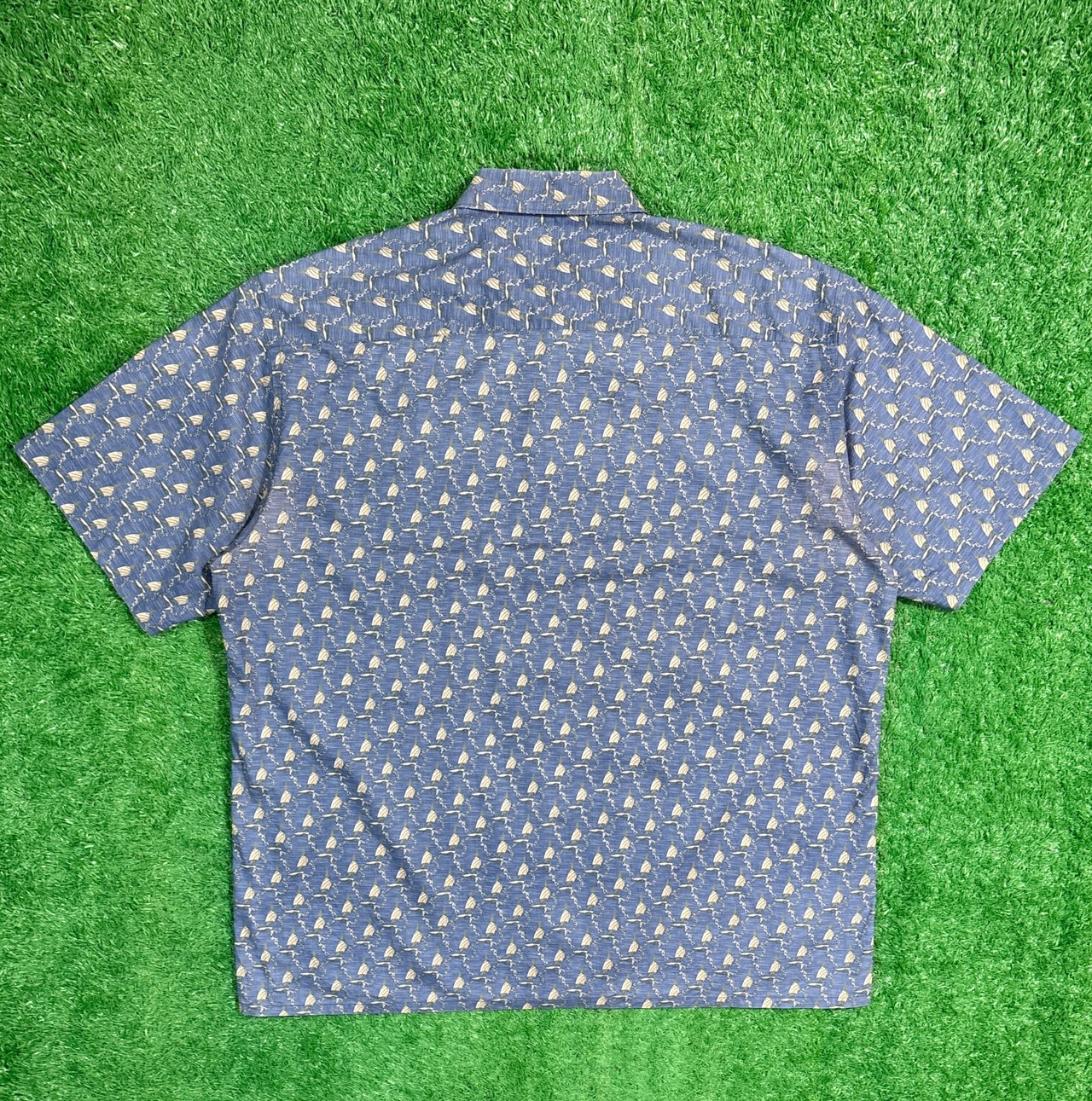 【Men's】 90s チェーン モチーフ 総柄 シャツ / 90年代 柄シャツ 半袖 夏 メンズ 496