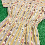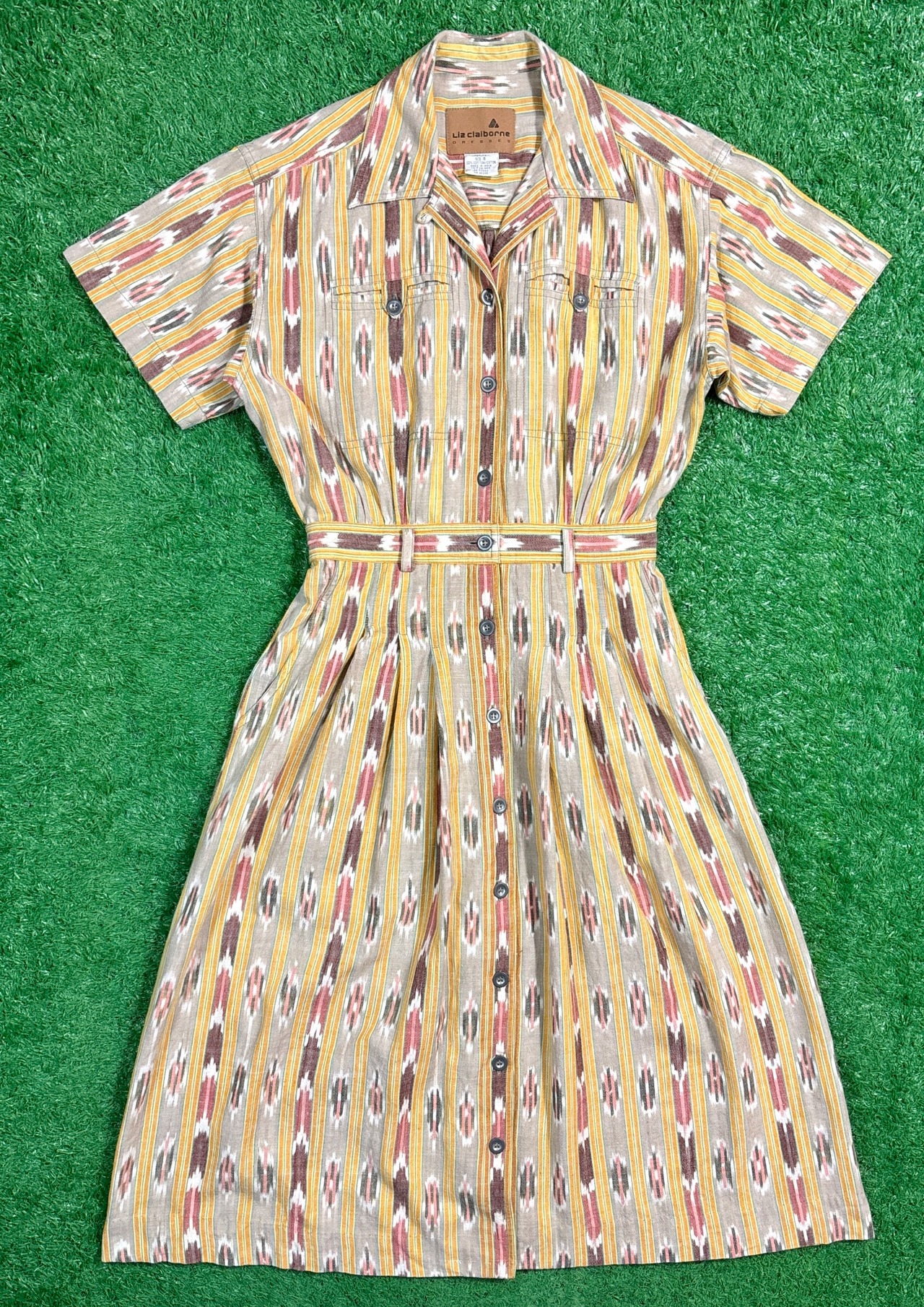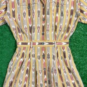【Lady's】 90s ネイティブ柄 開襟 ワンピース / 90年代 古着 ワンピ 総柄 ネイティブ レディース 夏 黄色 イエロー 517
