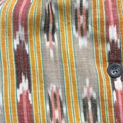 柔らかなイエローベースに、ネイティブ調の総柄が印象的な1枚。ウエストがゴム仕様となっていて、メリハリのあるシルエットに。開襟デザインと軽やかな生地感が、レトロなリゾート感を演出してくれます。フロントはボタン開きのデザインです。スネくらいの丈感になります。