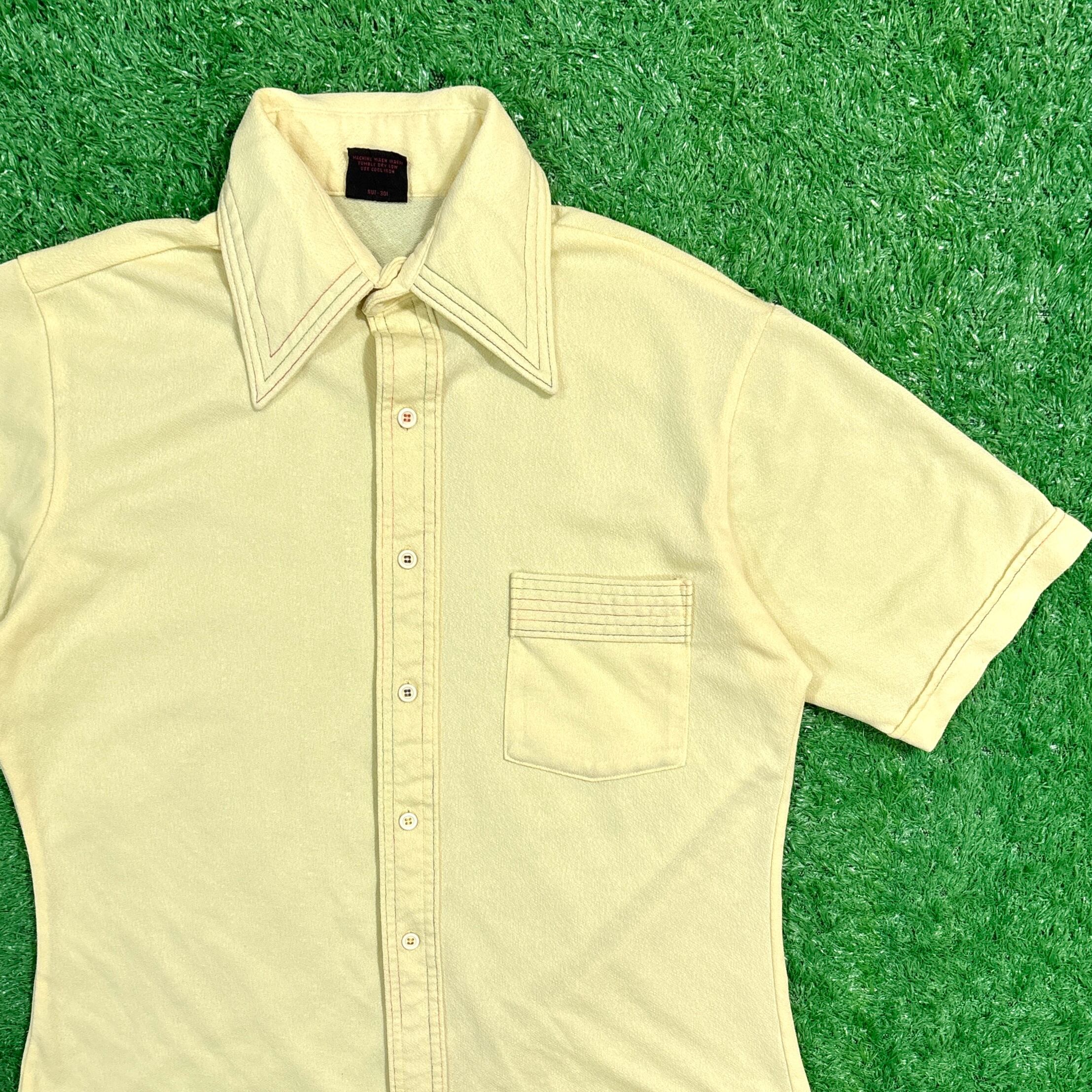 【Unisex】 70s 半袖 ニットシャツ / 70年代 古着 シャツ 黄色 イエロー 521