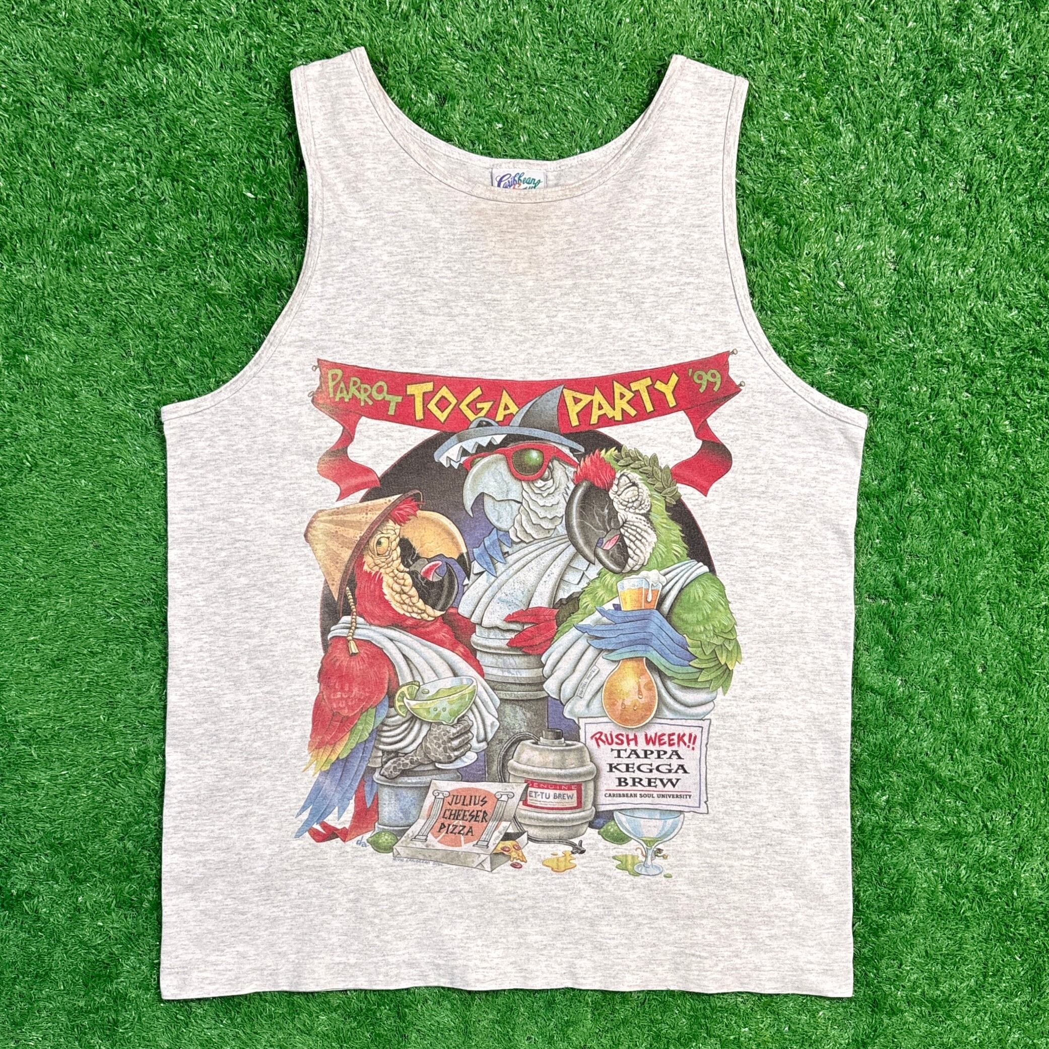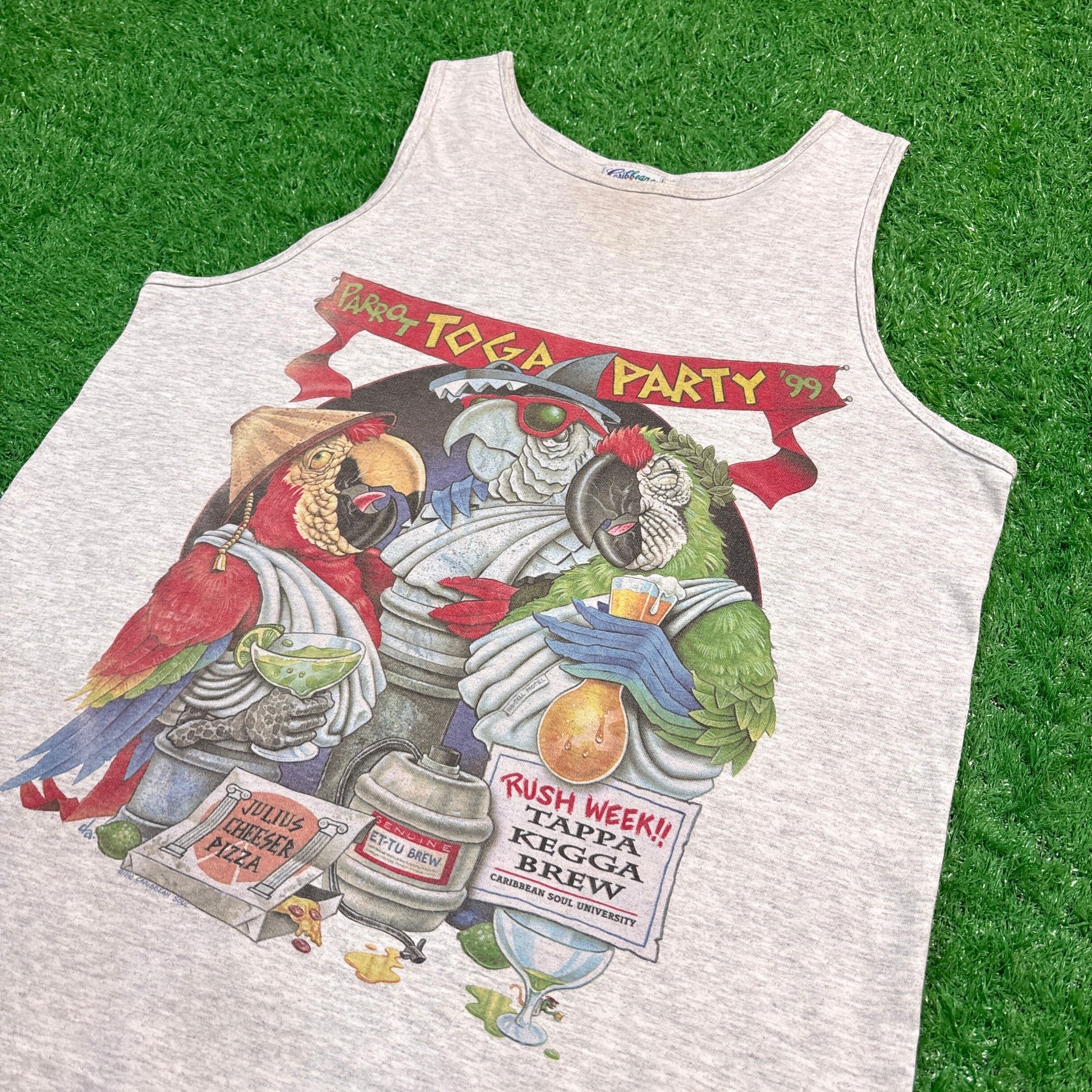 1990年代のアメリカ製、ポップなオウムのイラストが目を引くタンクトップです。