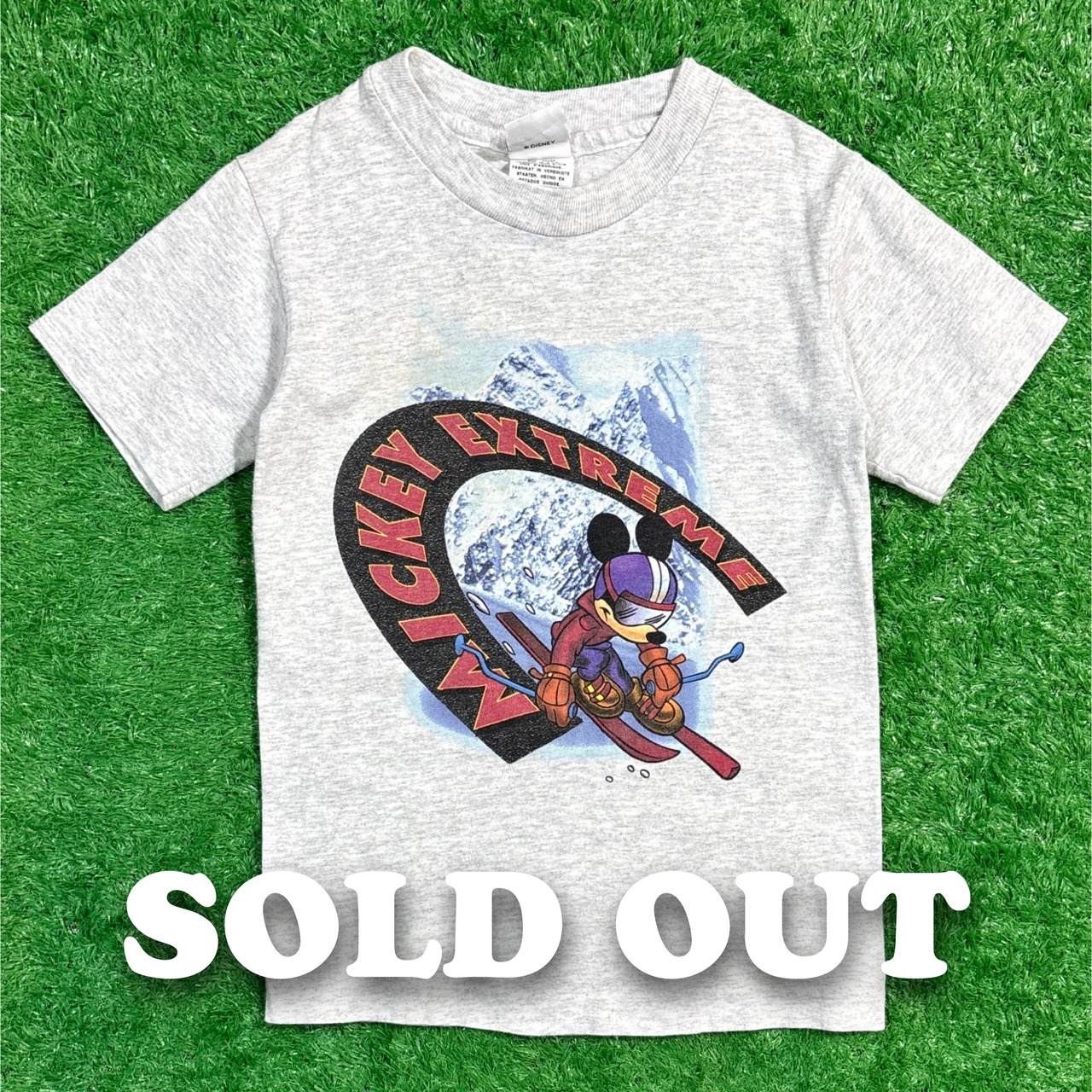 1990年代のアメリカ製、スキーを楽しむミッキーが描かれた「MICKEY EXTREME」プリントのチビTシャツです。