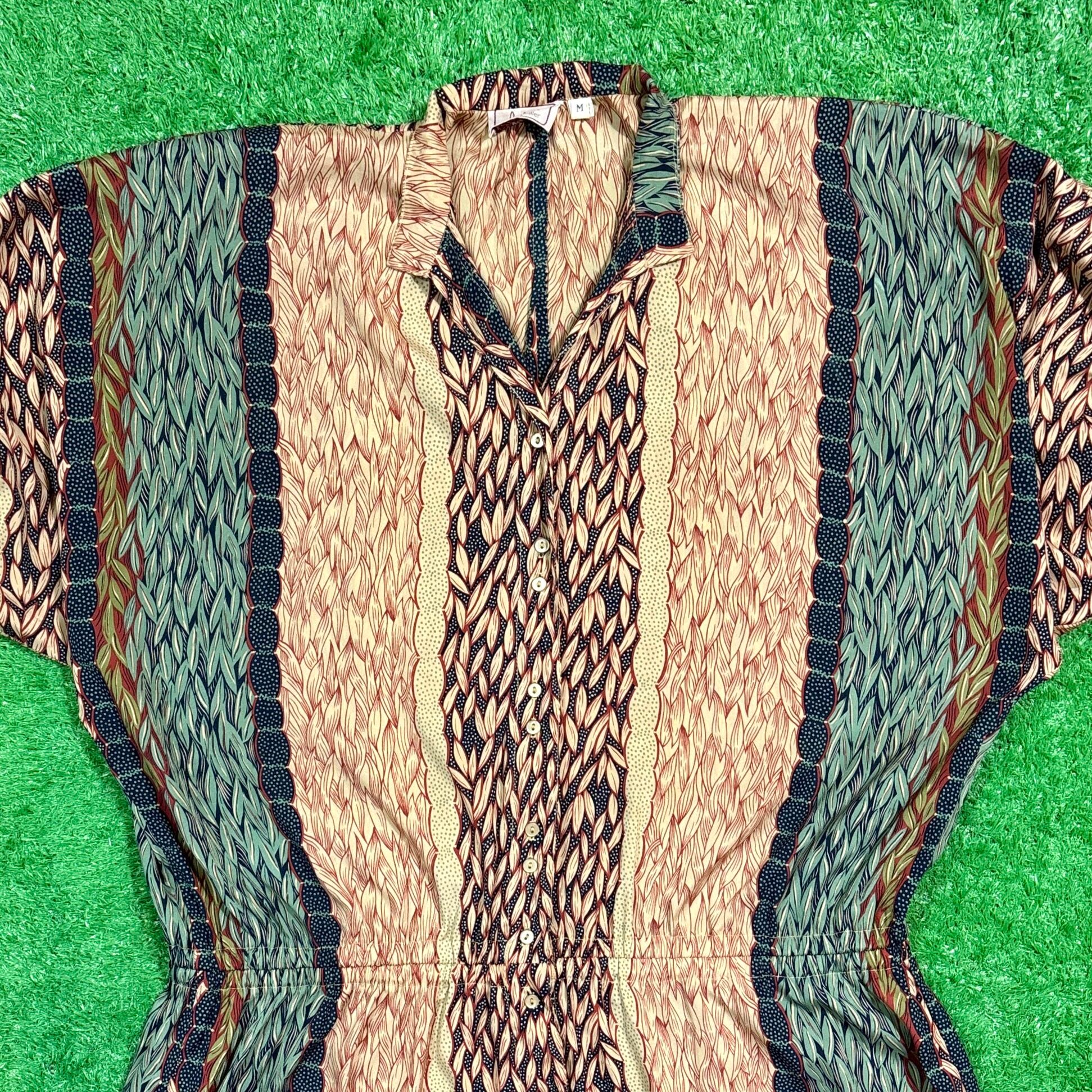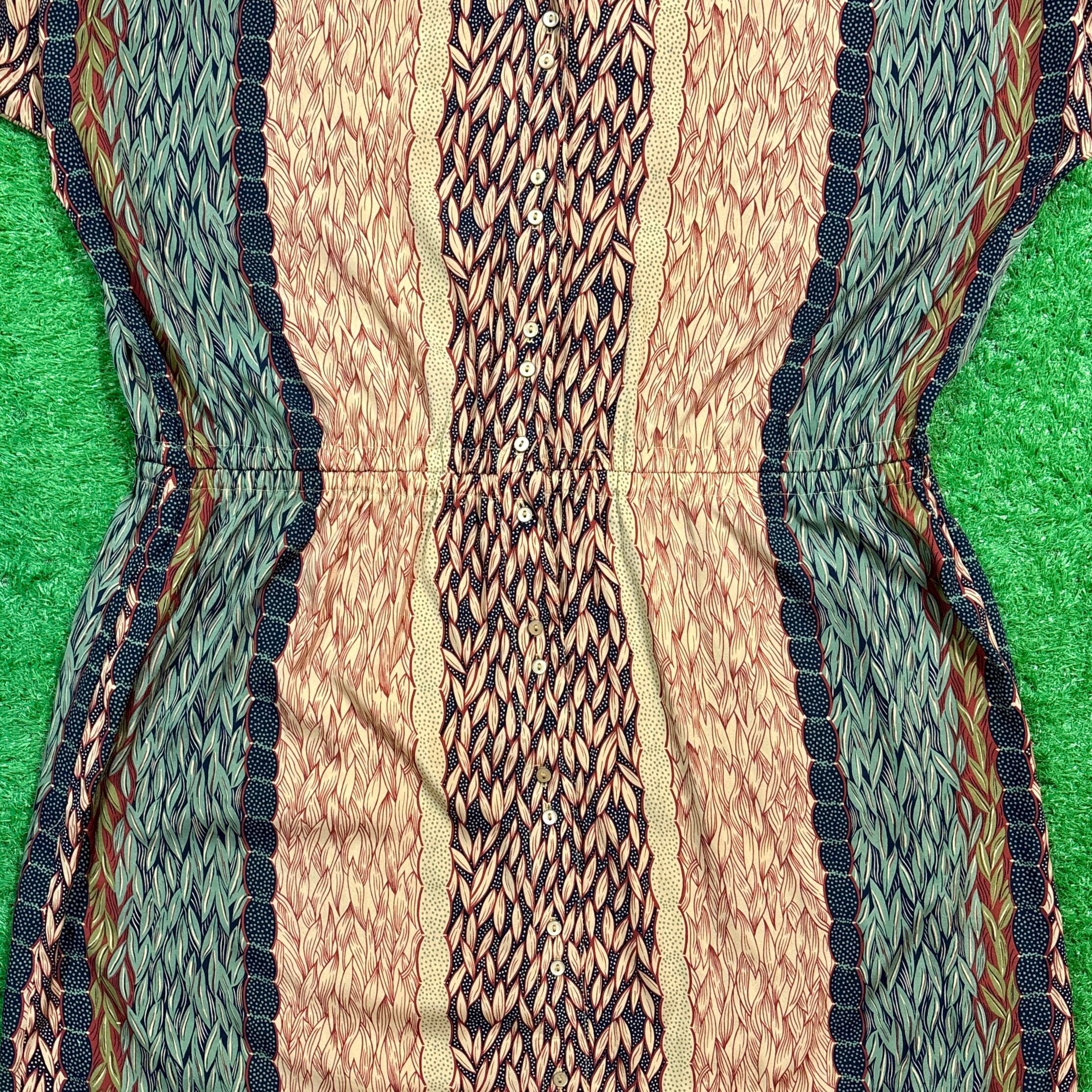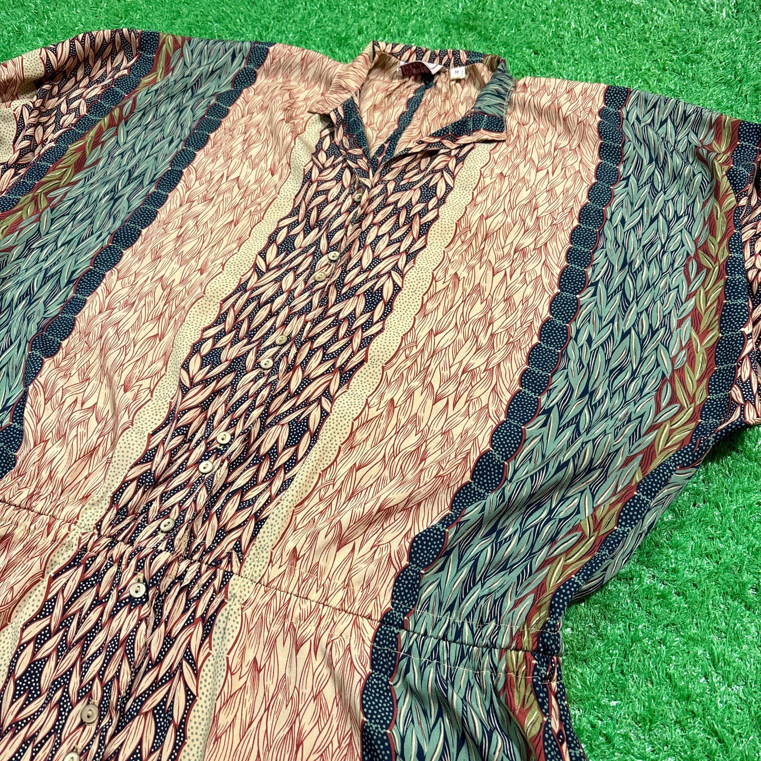 【Lady's】 90s ボタニカル柄 シャツ ワンピース / 90年代 古着 半袖 ロング丈 総柄 ワンピ レディース 夏 543