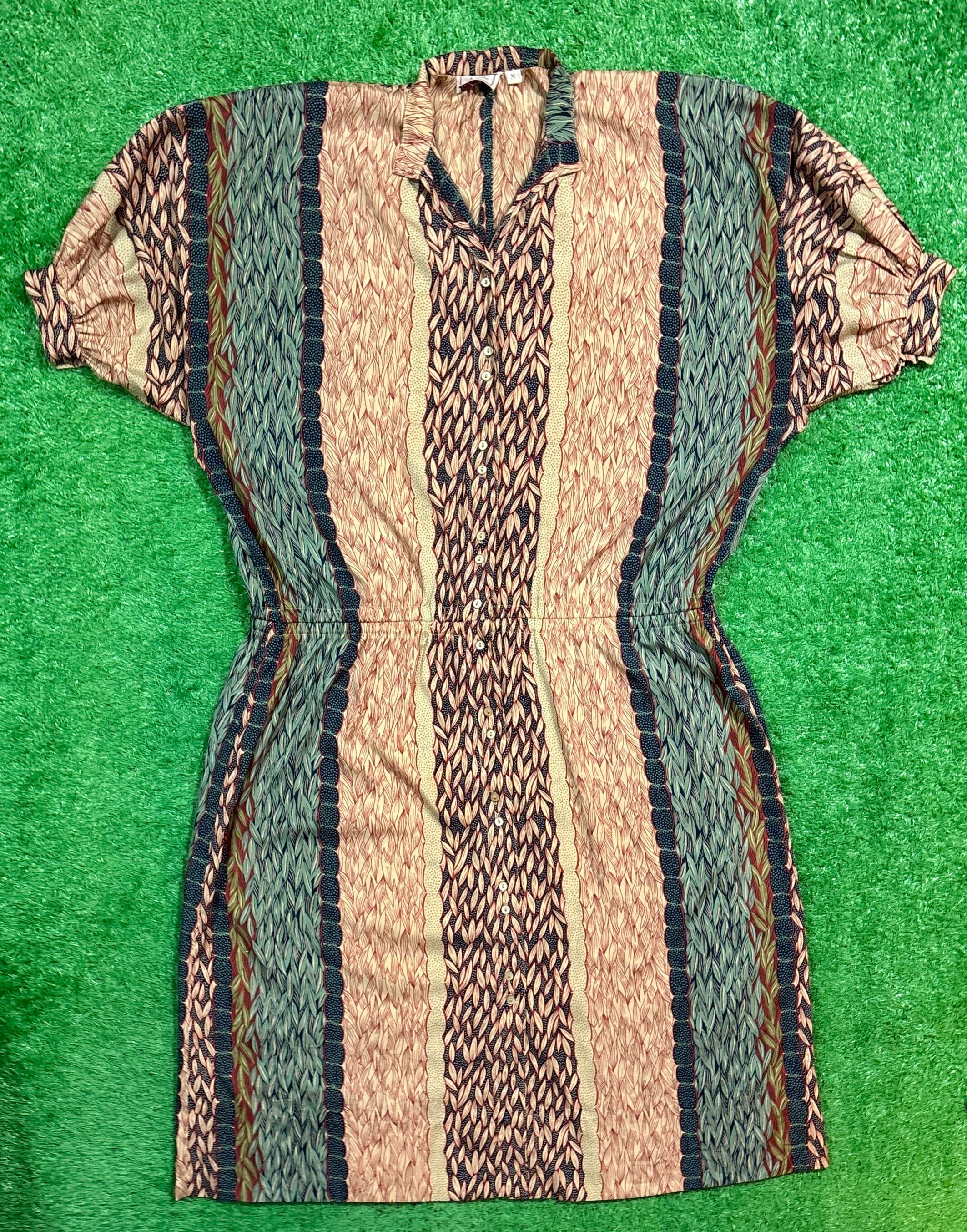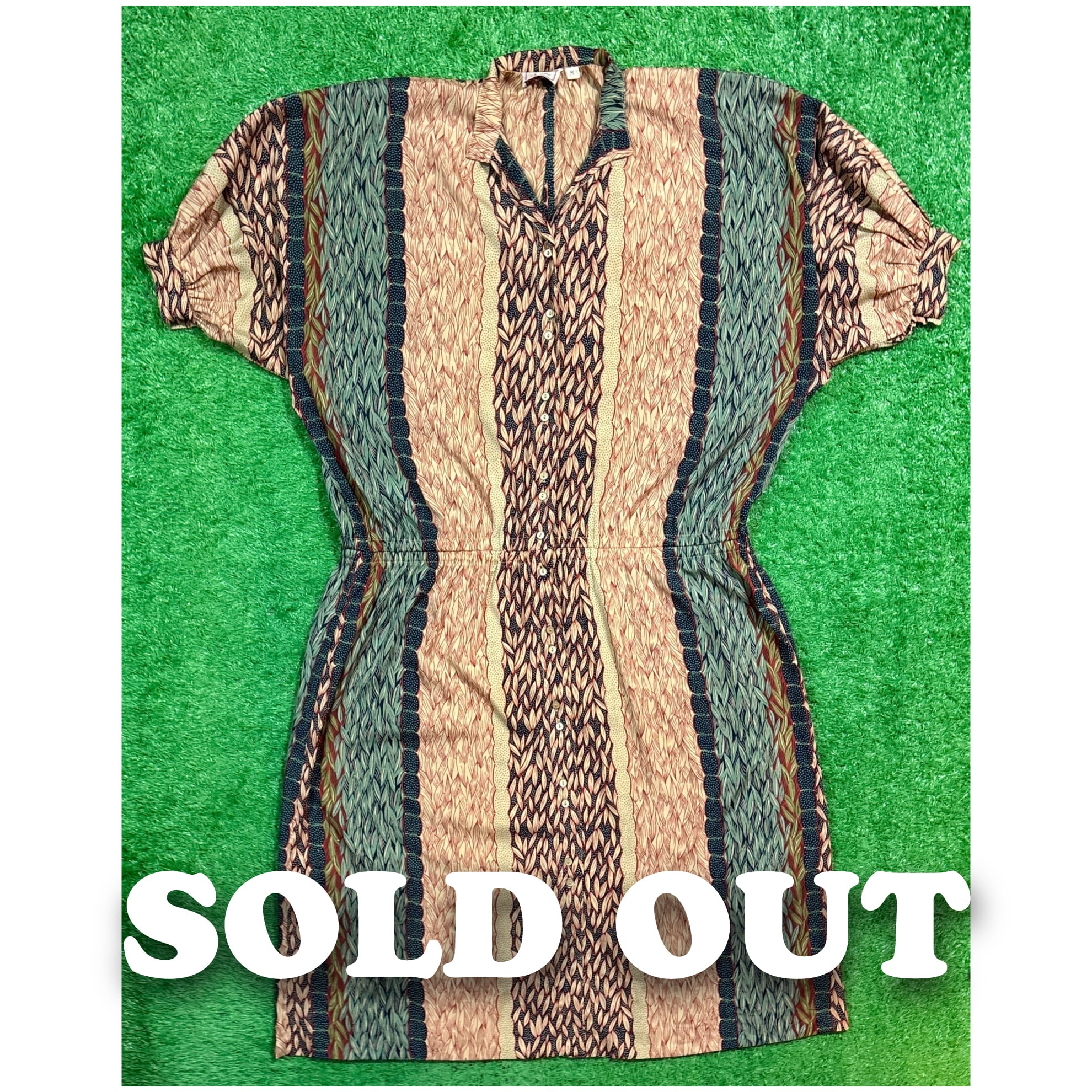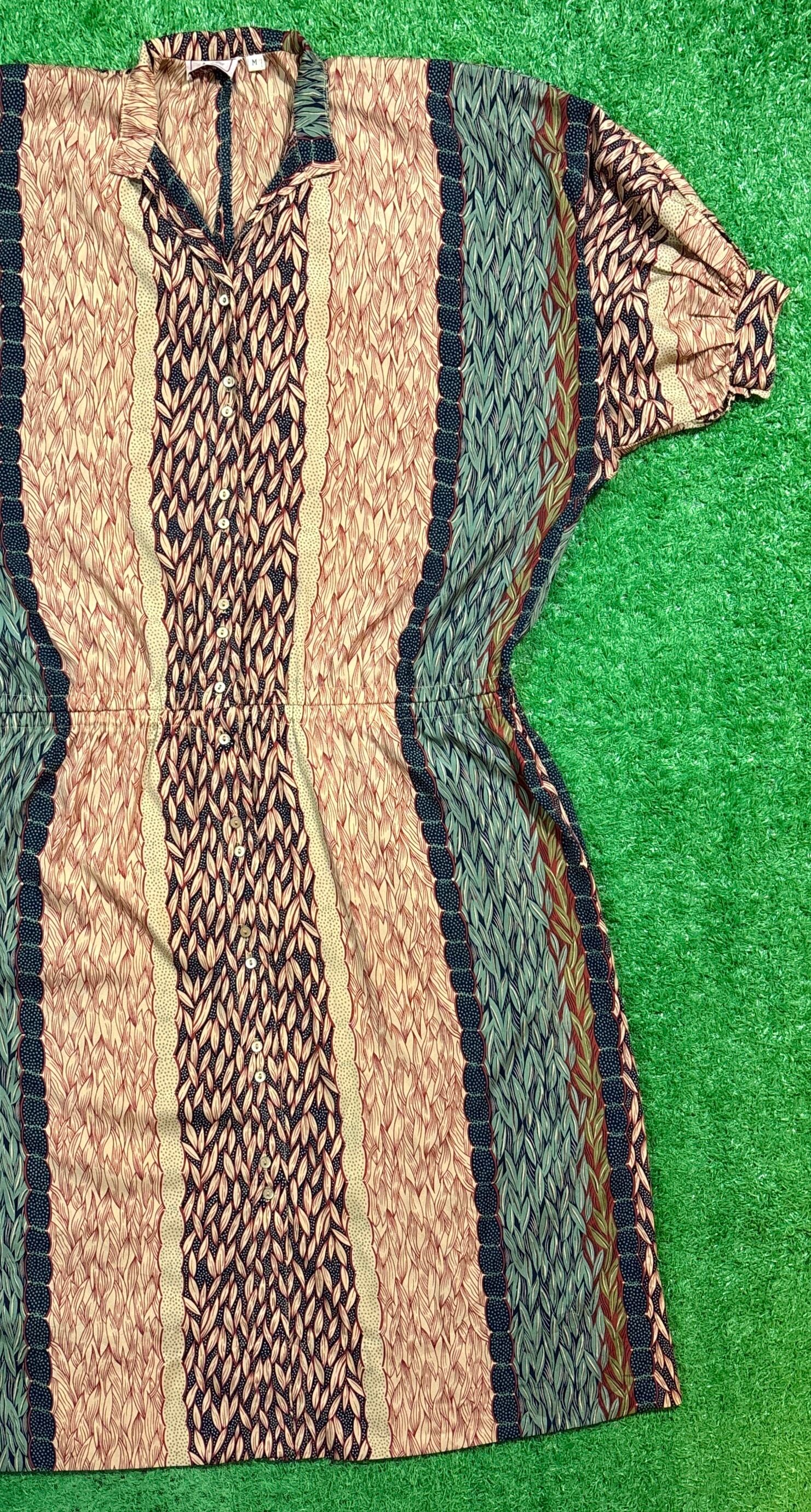【Lady's】 90s ボタニカル柄 シャツ ワンピース / 90年代 古着 半袖 ロング丈 総柄 ワンピ レディース 夏 543
