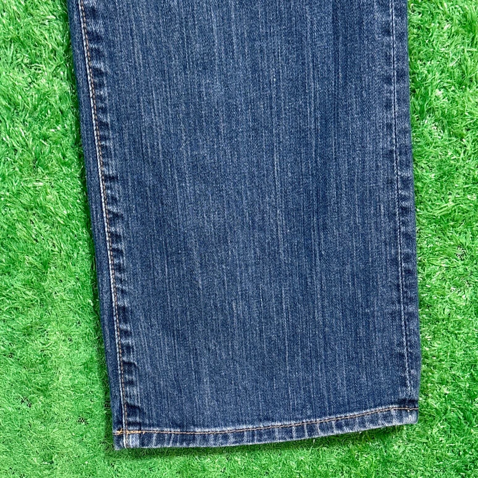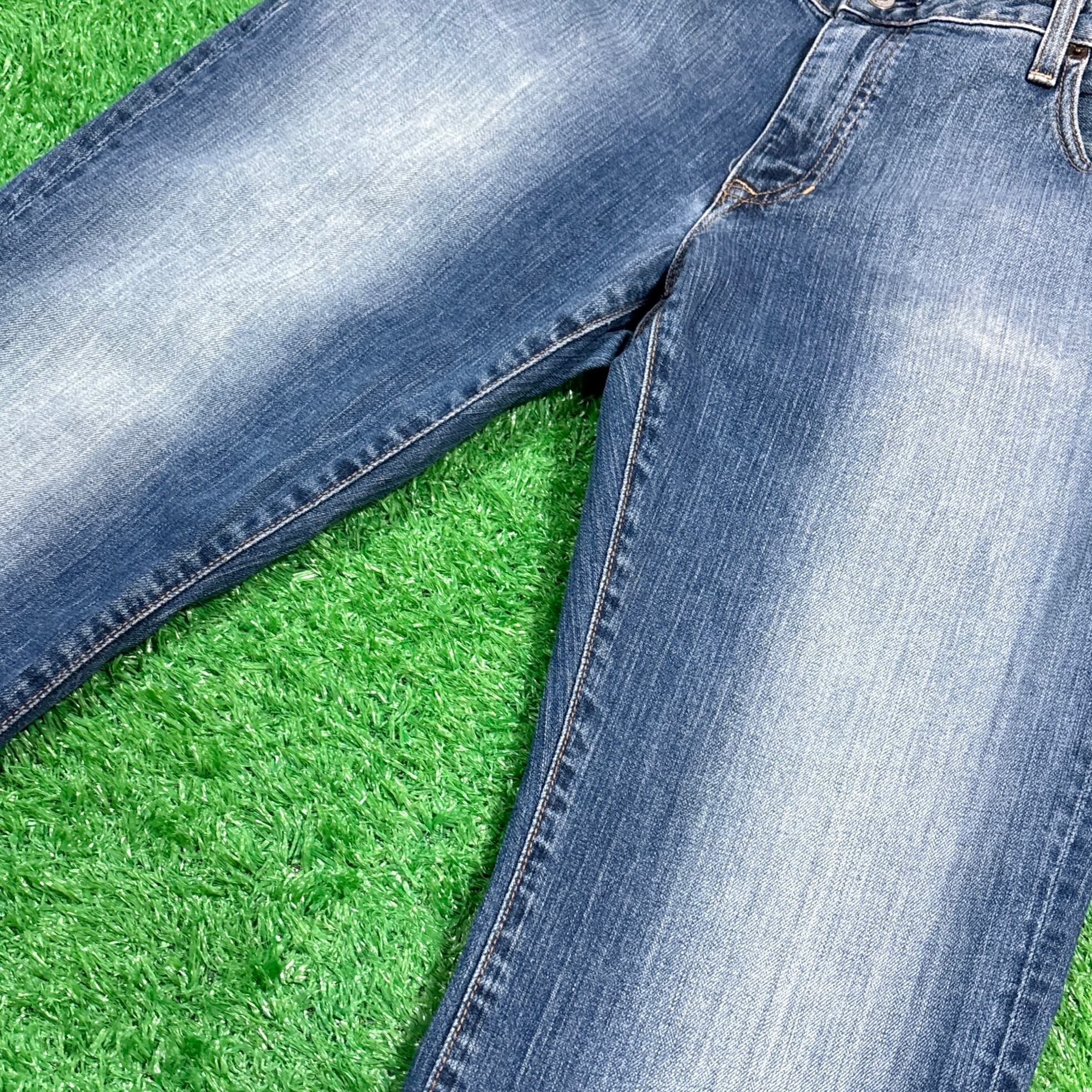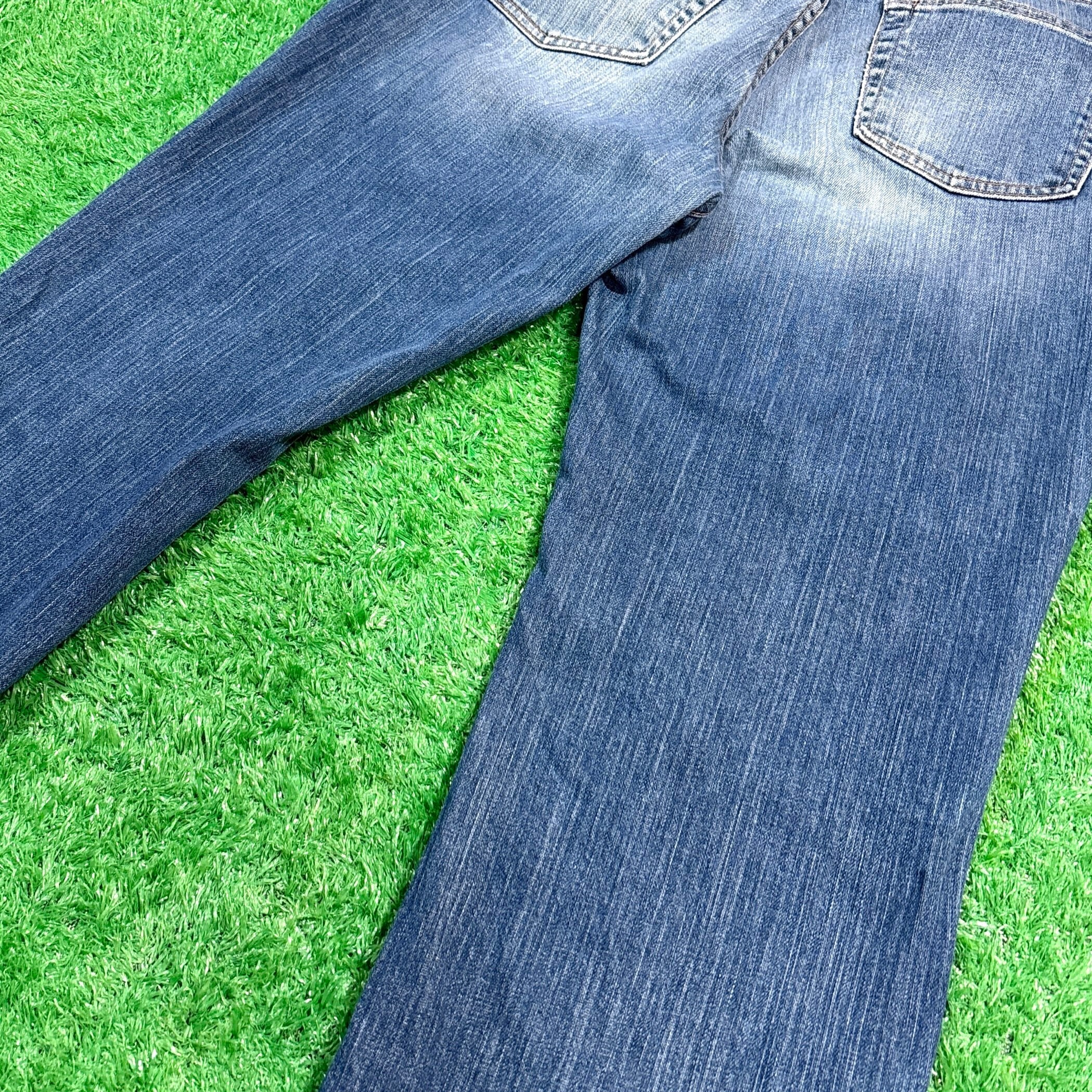 全体に程よく色落ちが入り、脚のラインに沿ったフレアシルエットが特徴的な一本。裾に向かって広がるシルエットが足元をすっきりと見せてくれ、00sらしいブーツカットの雰囲気を楽しめるデザインです。しっかりとしたデニム生地で、シンプルながら存在感のあるアイテムです。
