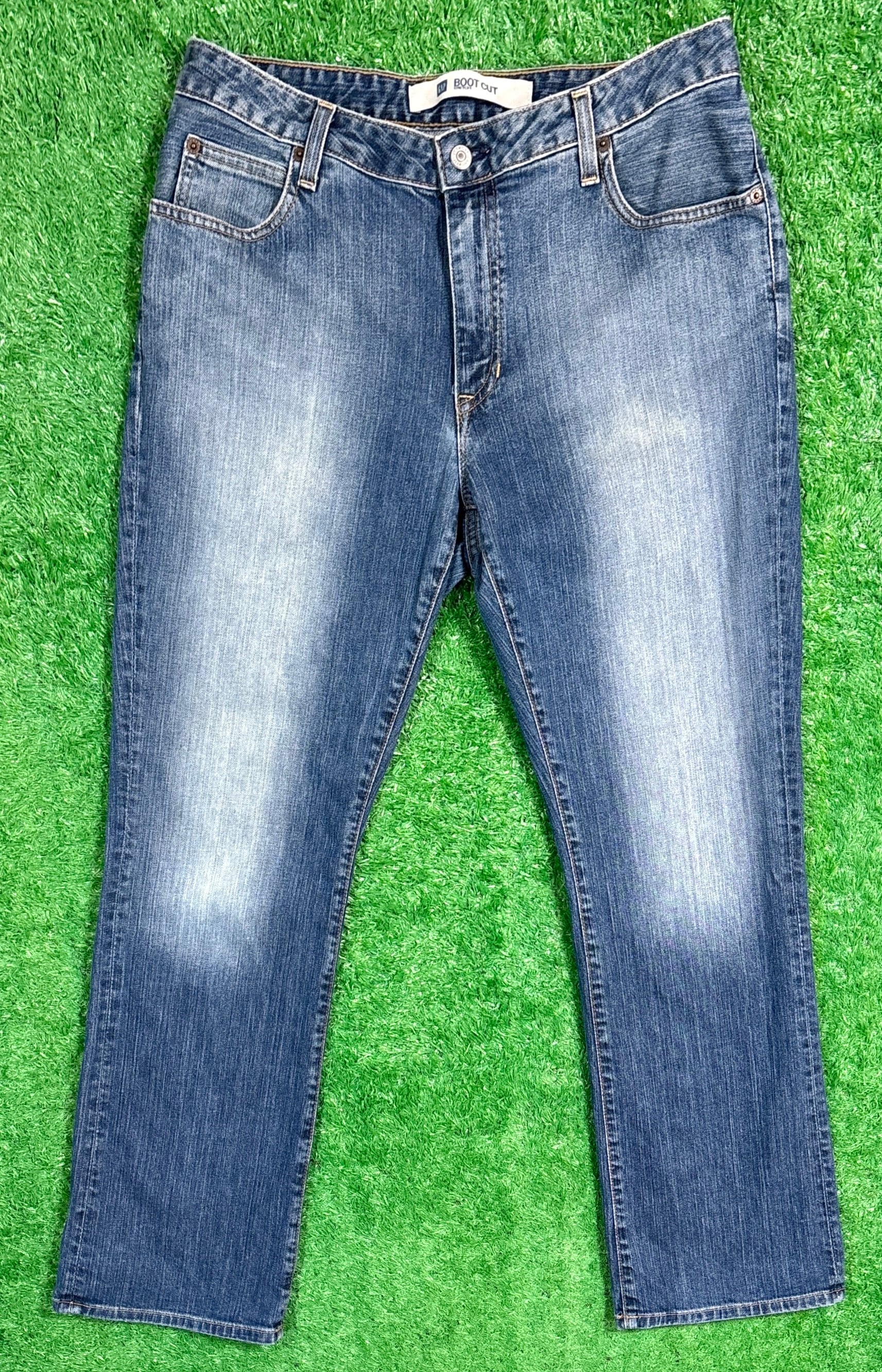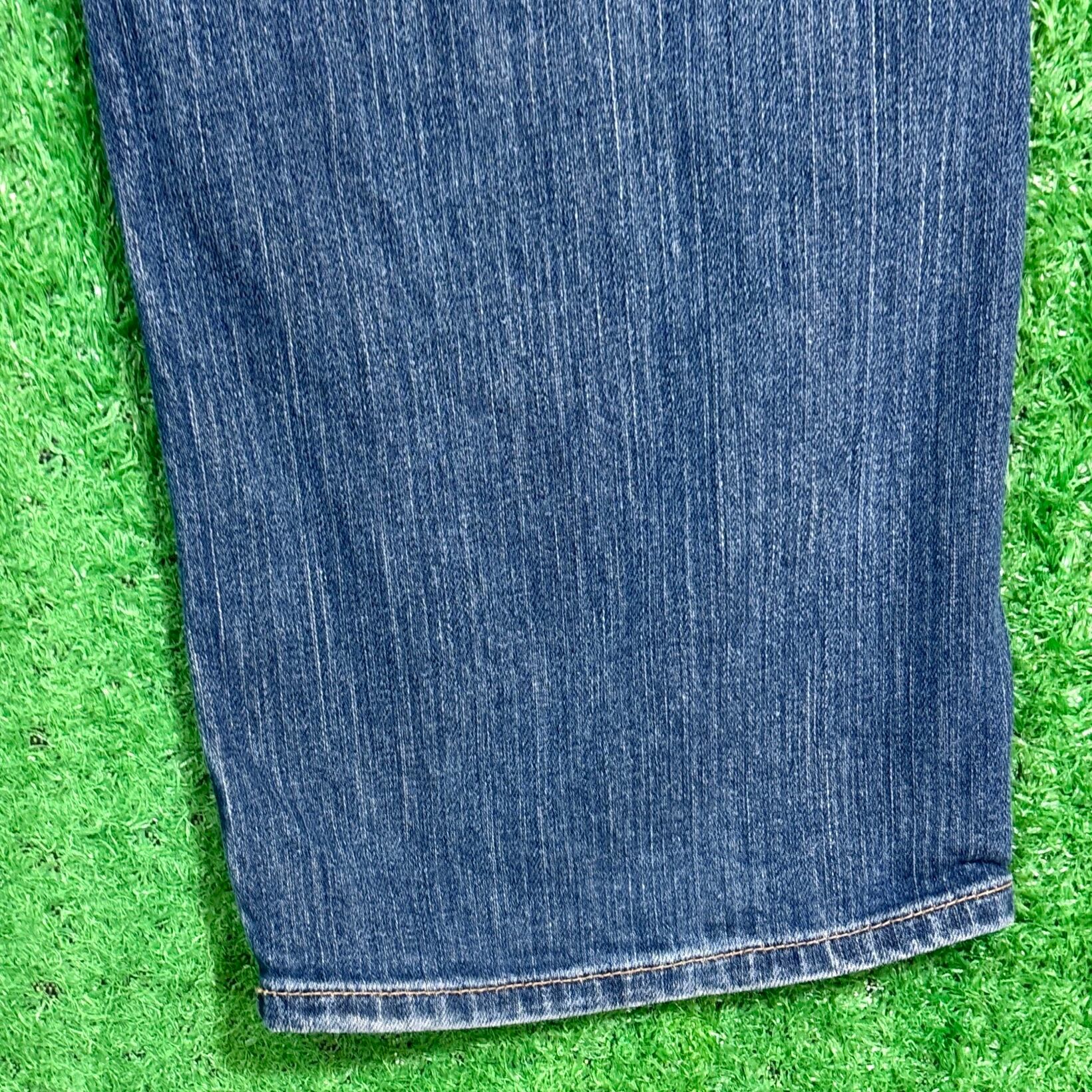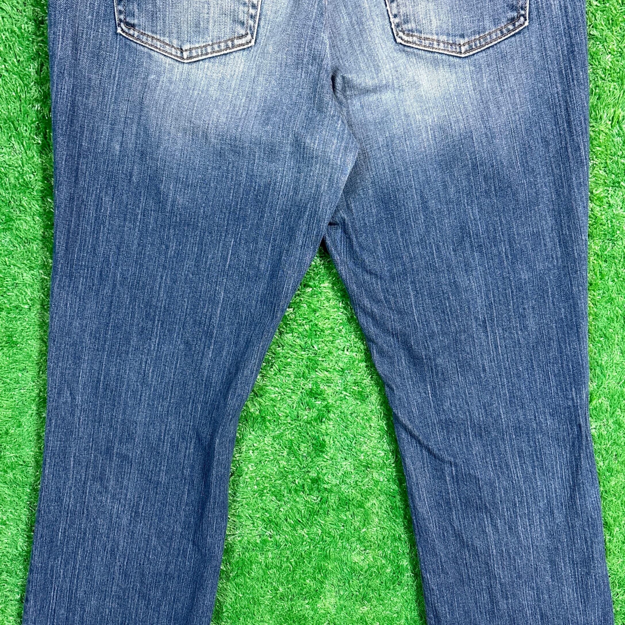 全体に程よく色落ちが入り、脚のラインに沿ったフレアシルエットが特徴的な一本。裾に向かって広がるシルエットが足元をすっきりと見せてくれ、00sらしいブーツカットの雰囲気を楽しめるデザインです。しっかりとしたデニム生地で、シンプルながら存在感のあるアイテムです。