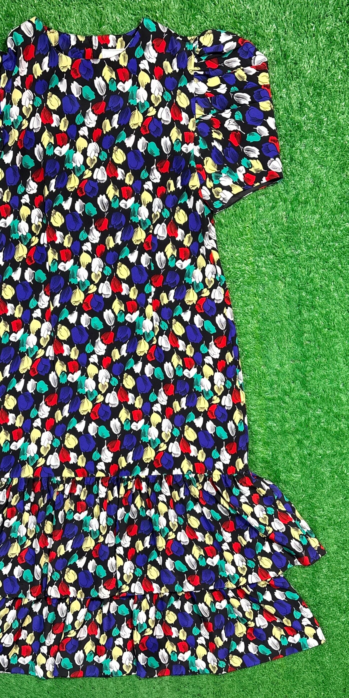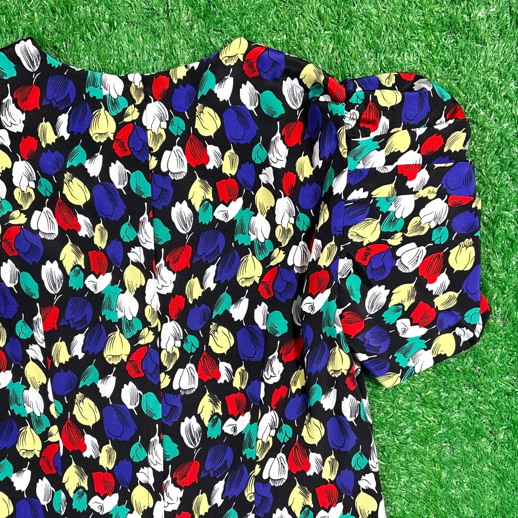 1980年代のアメリカ製、花柄の半袖ワンピースです。