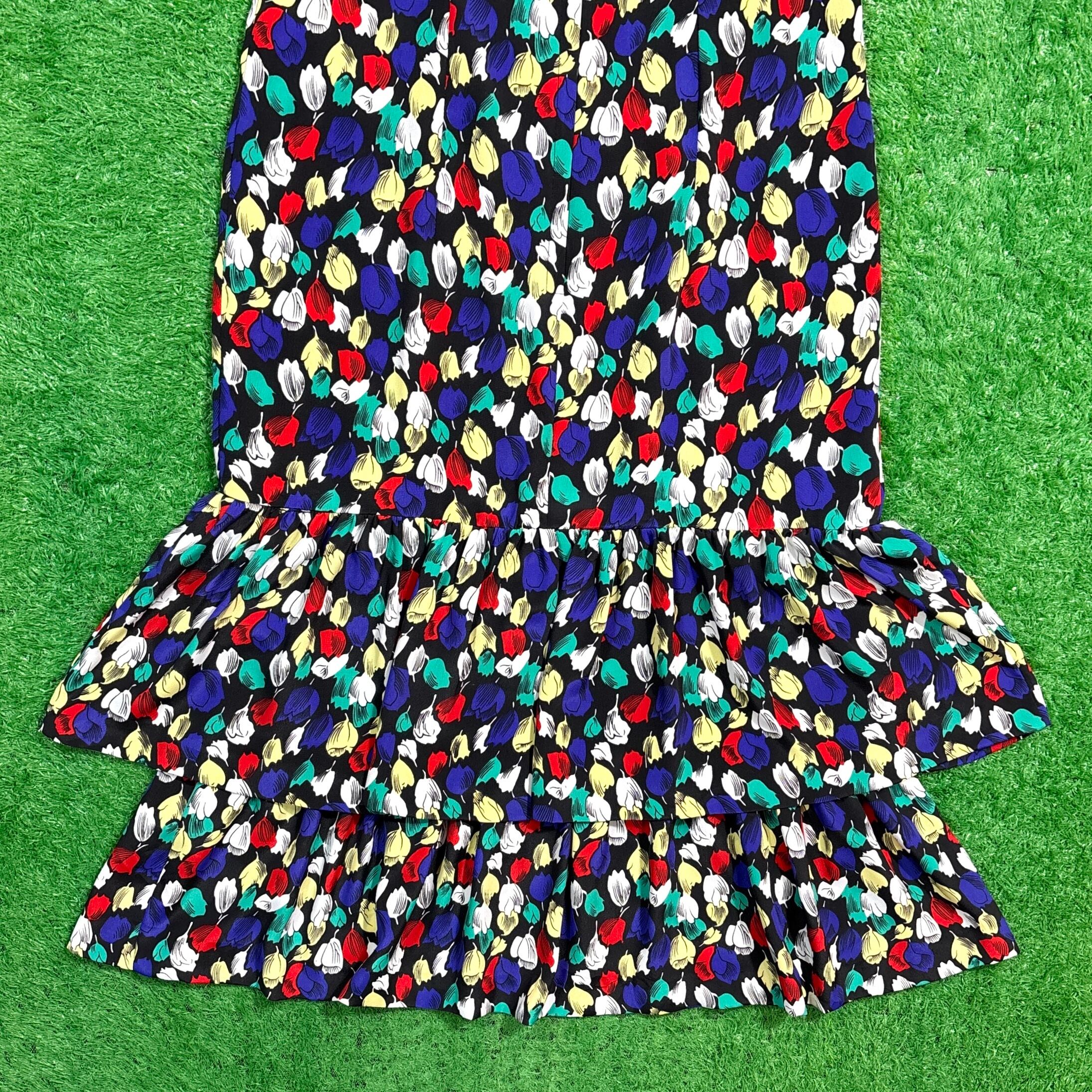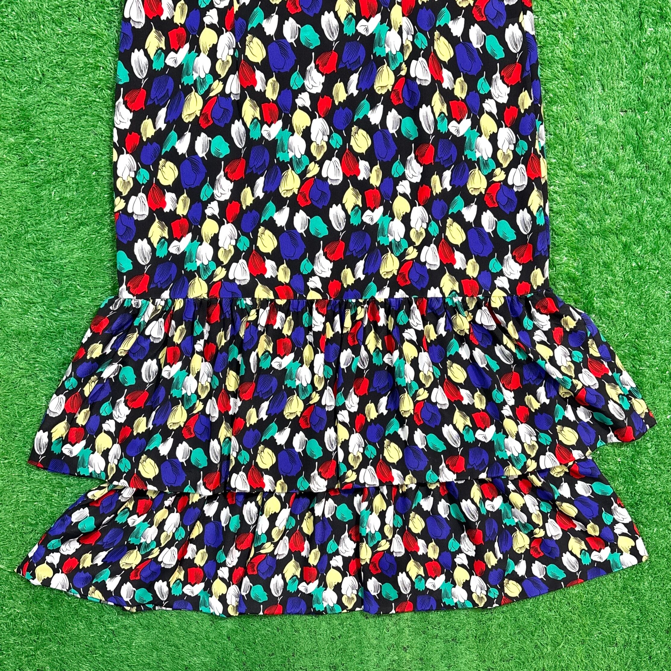 カラフルな花柄が全体にプリントされた、存在感ある総柄デザイン。