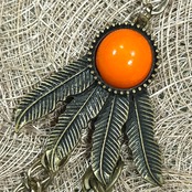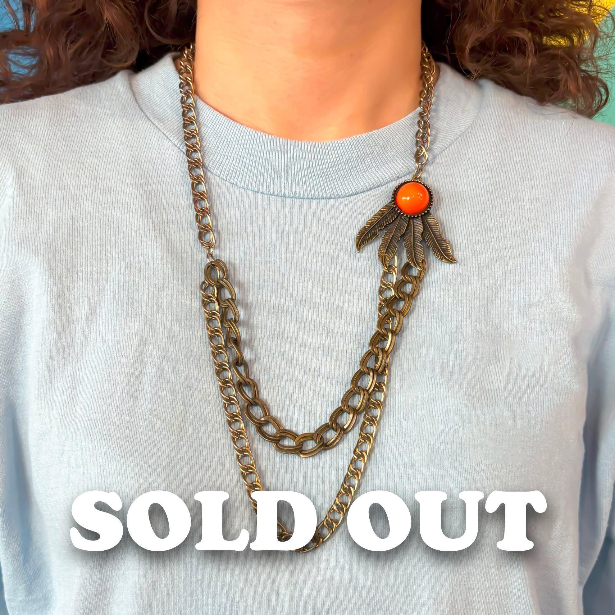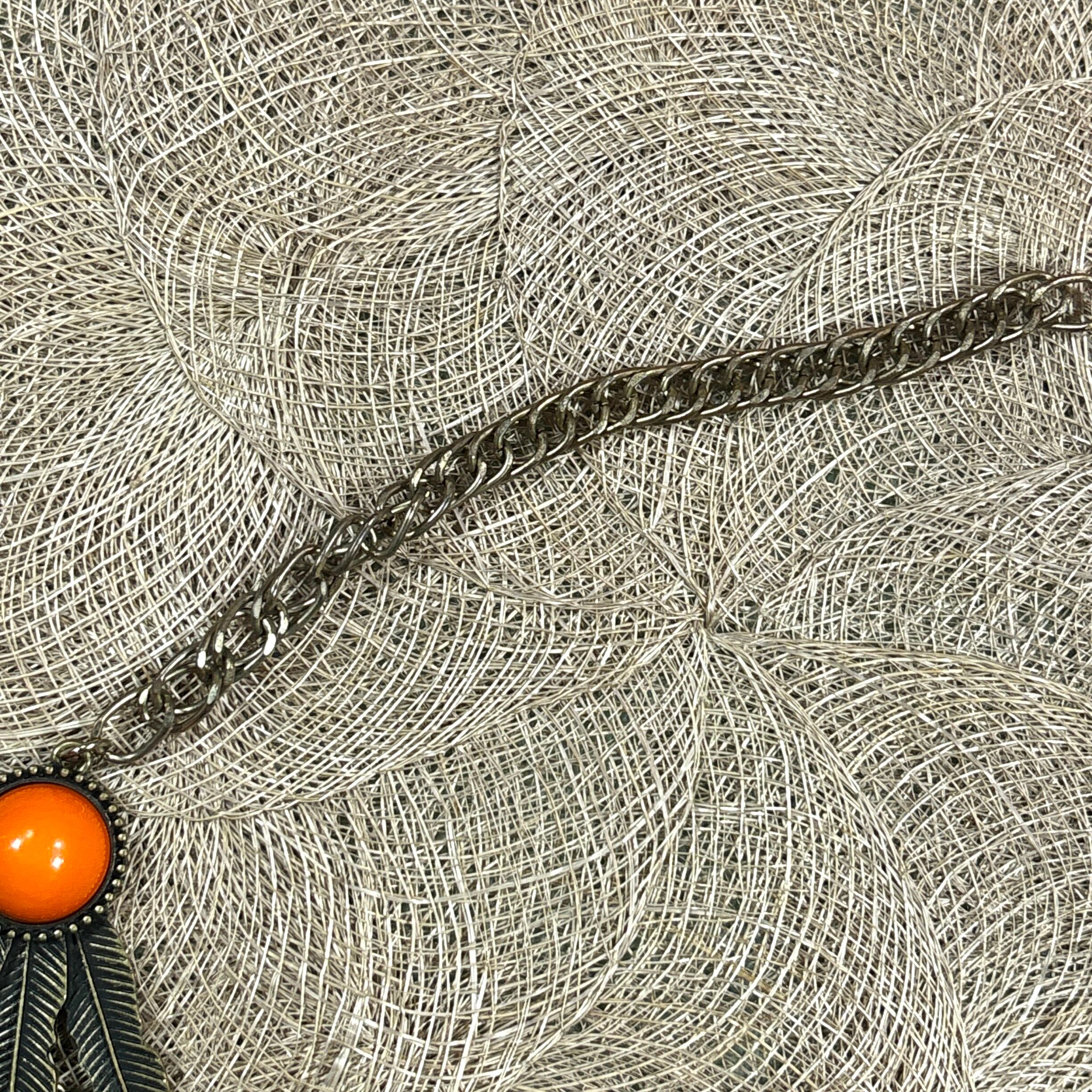 【Unisex】 フェザーモチーフ オレンジビーズ チェーンネックレス / 古着 アクセサリー ネイティブ ネックレス