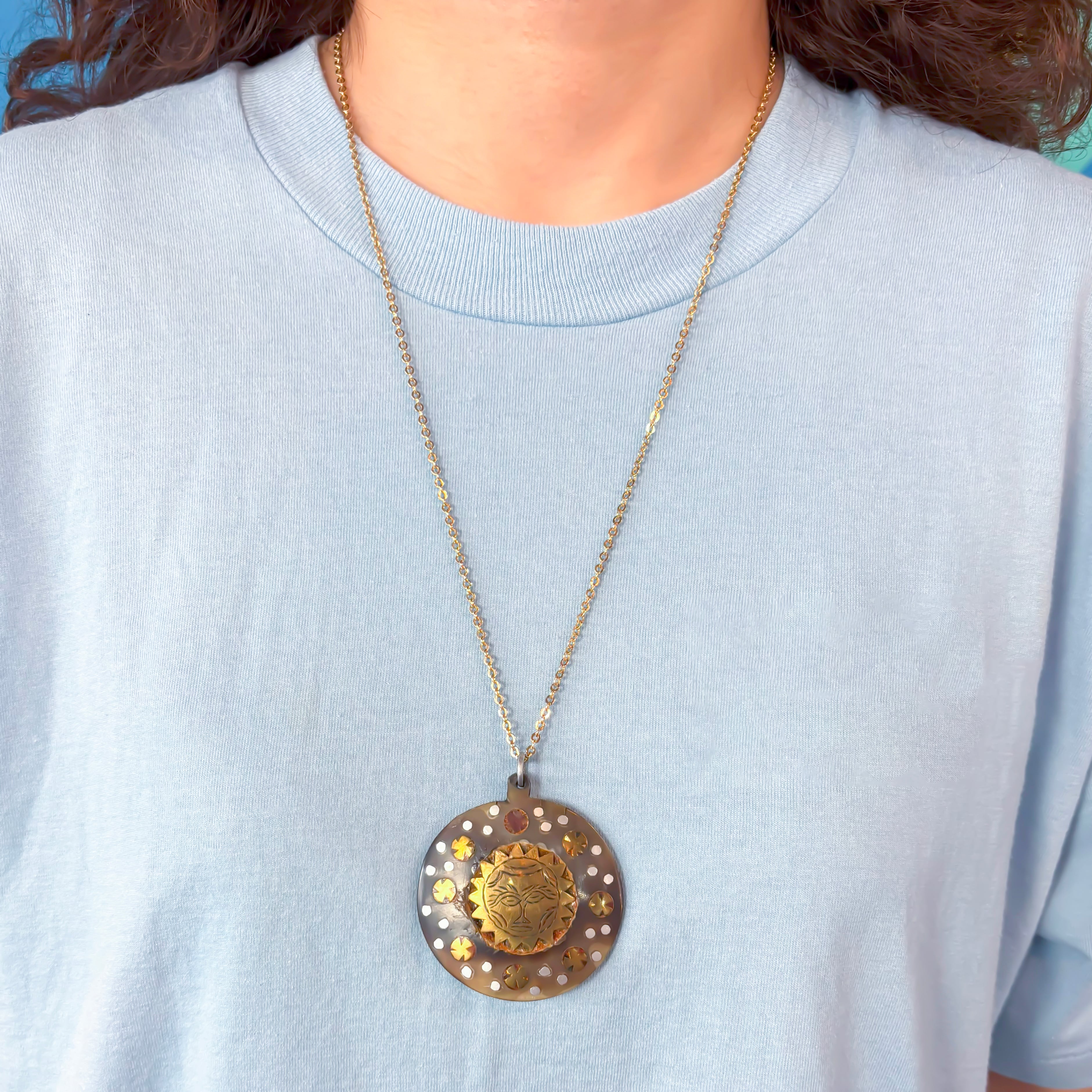 【Unisex】 太陽 モチーフ ペンダント ネックレス / 古着 アクセサリー ネイティブ 民族 ヒッピー