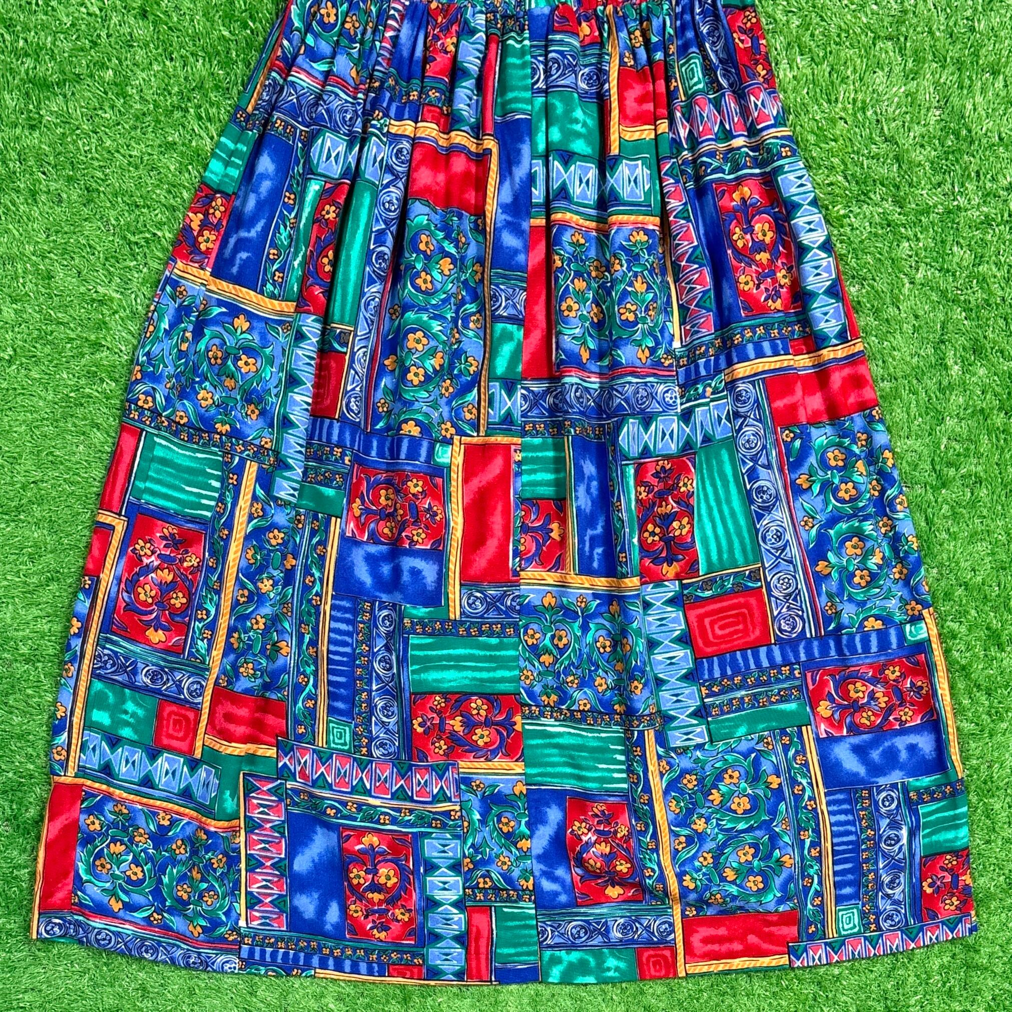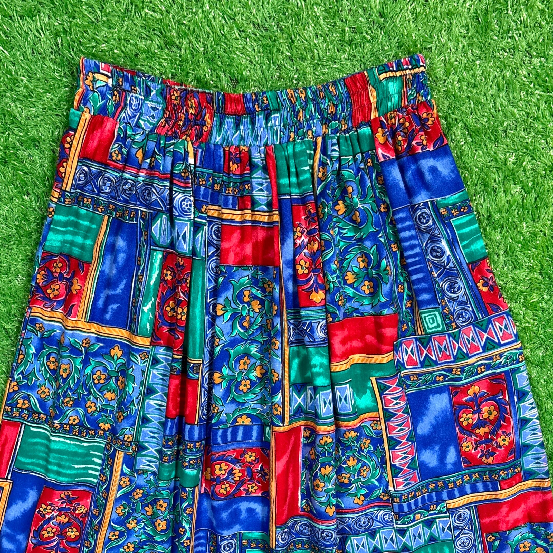 1980〜90年代のアメリカ製、エスニック柄プリーツイージースカートです。