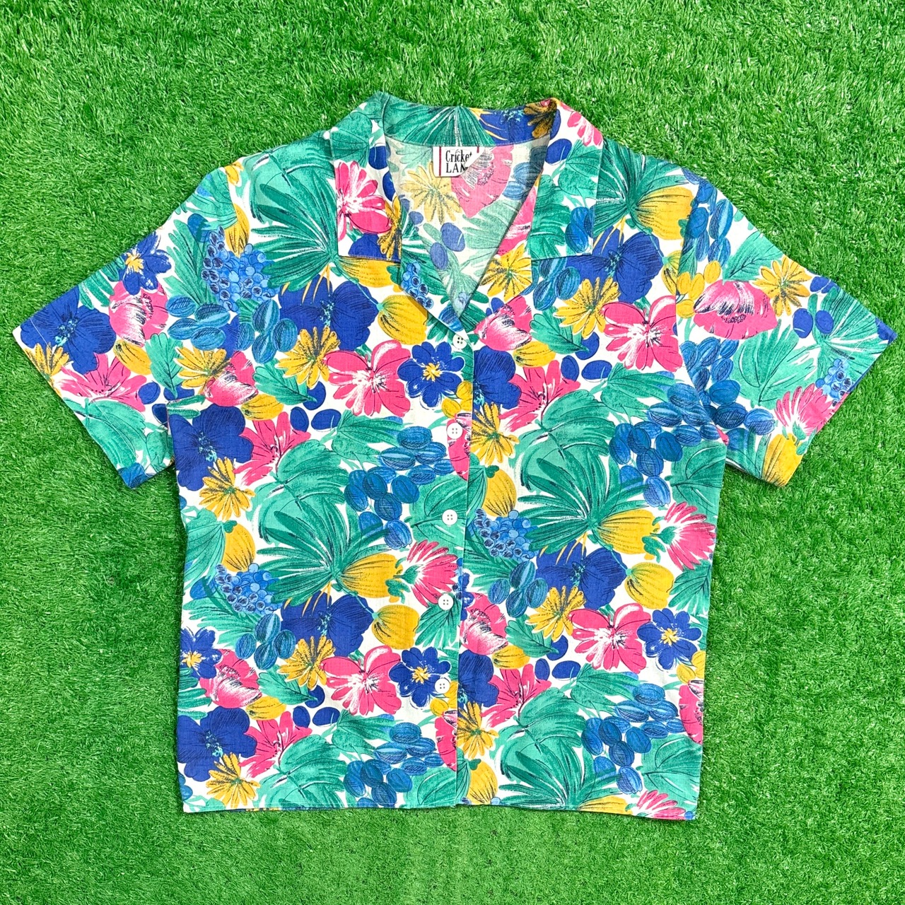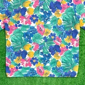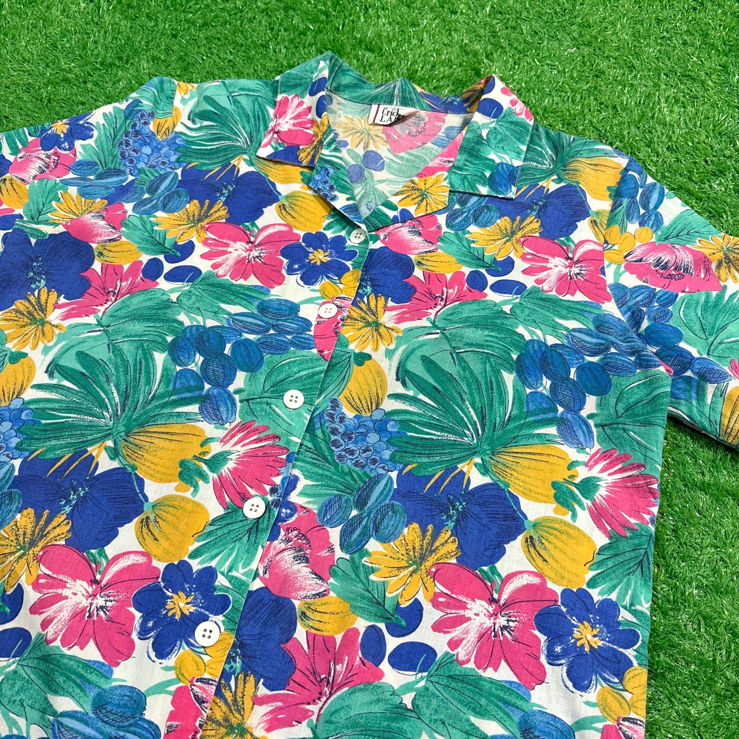 【Lady's】 80s 花柄 開襟 シャツ / 80年代 半袖 総柄 柄シャツ 夏 レディース 579