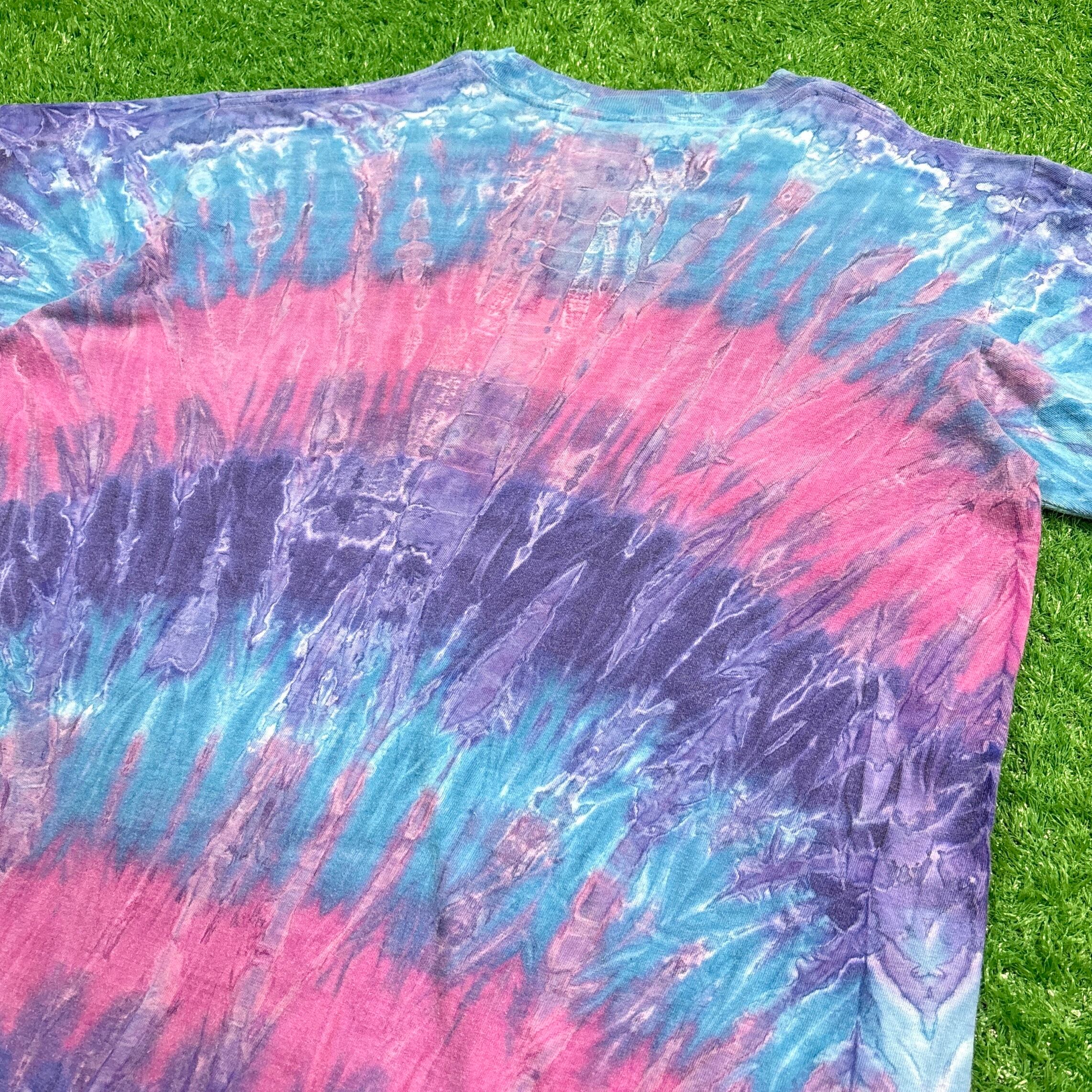 ブルー・ピンク・パープルの淡い色味が優しく溶け合った、パステルカラーのタイダイ染めが印象的な一枚。柔らかな配色がスタイリングに抜け感を与えてくれる、90年代らしいゆったりとした雰囲気のTシャツです。シングルステッチ仕様で、古着ならではの味わいも魅力的。
