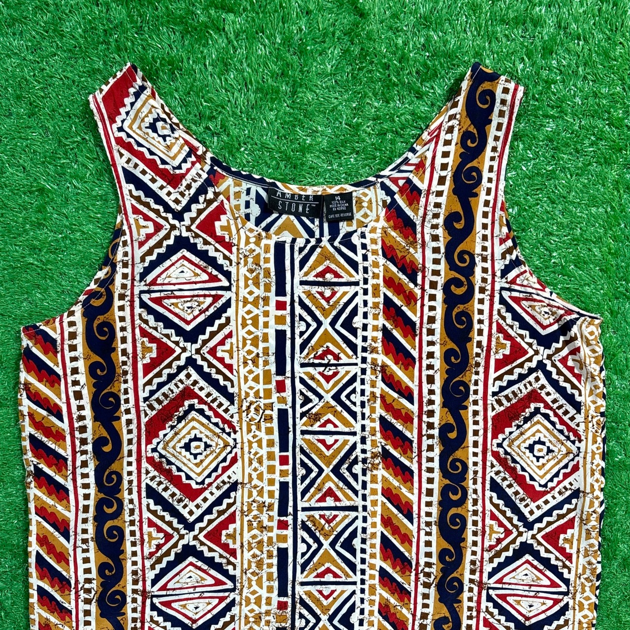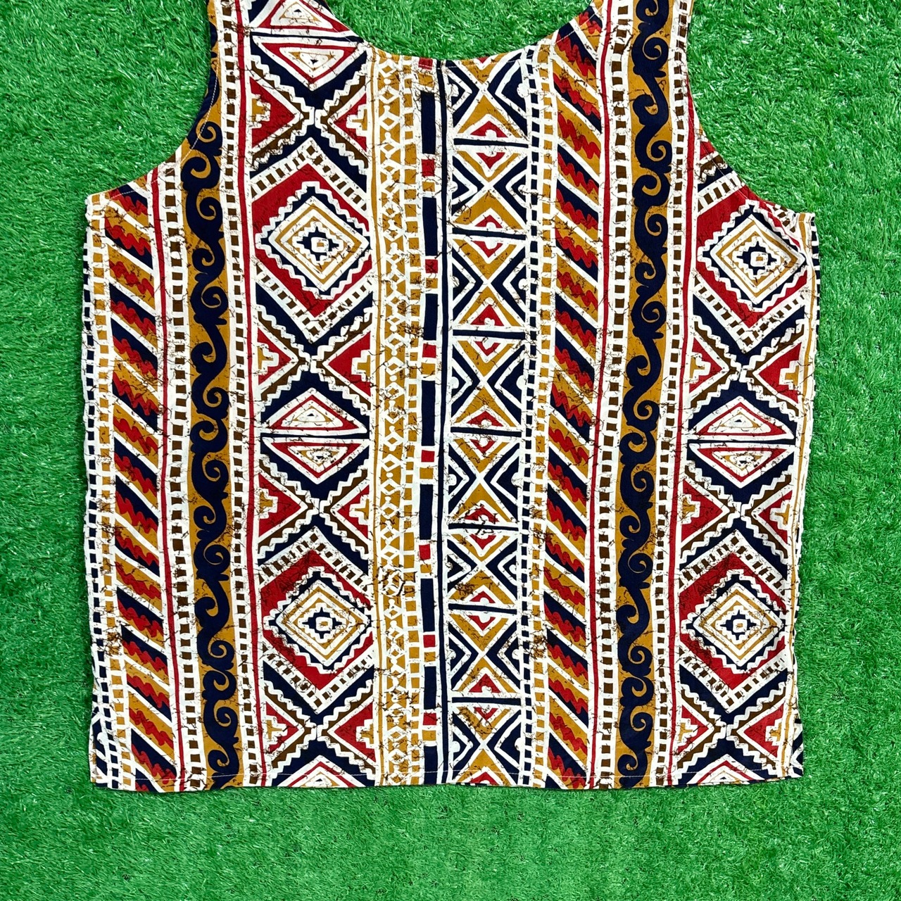 【Lady's】 90s エスニック柄 シルク タンクトップ / 90年代 ネイティブ柄 エスニック ネイティブ 古着 レディース 夏 595