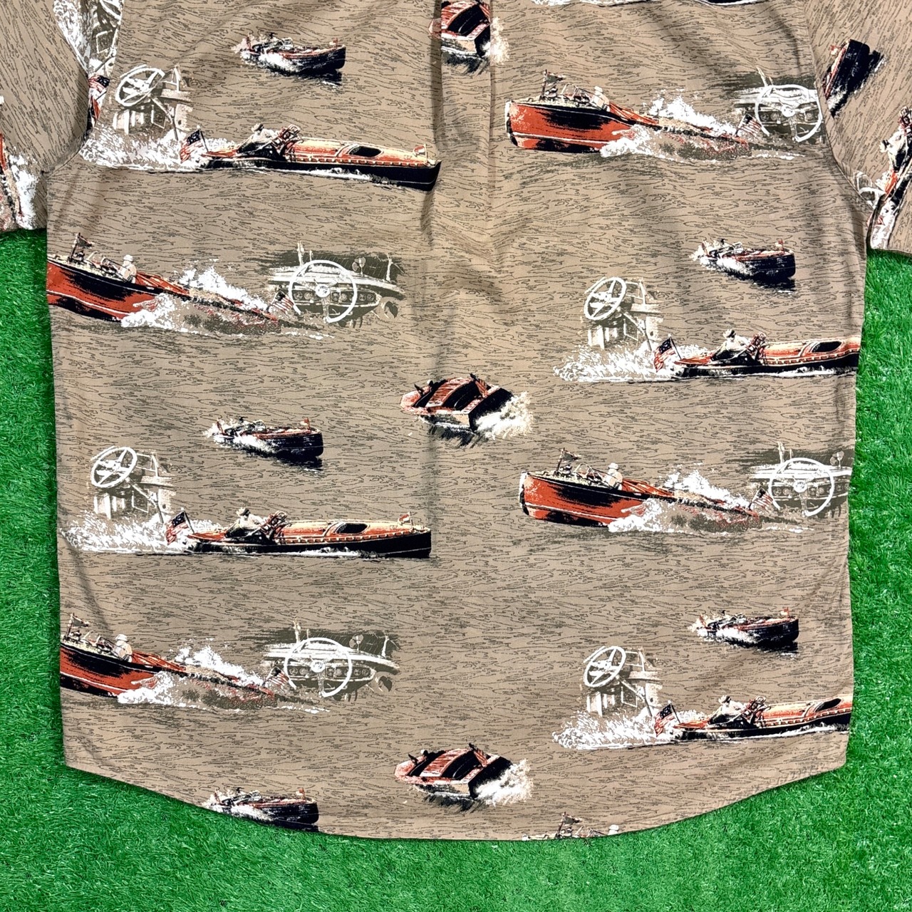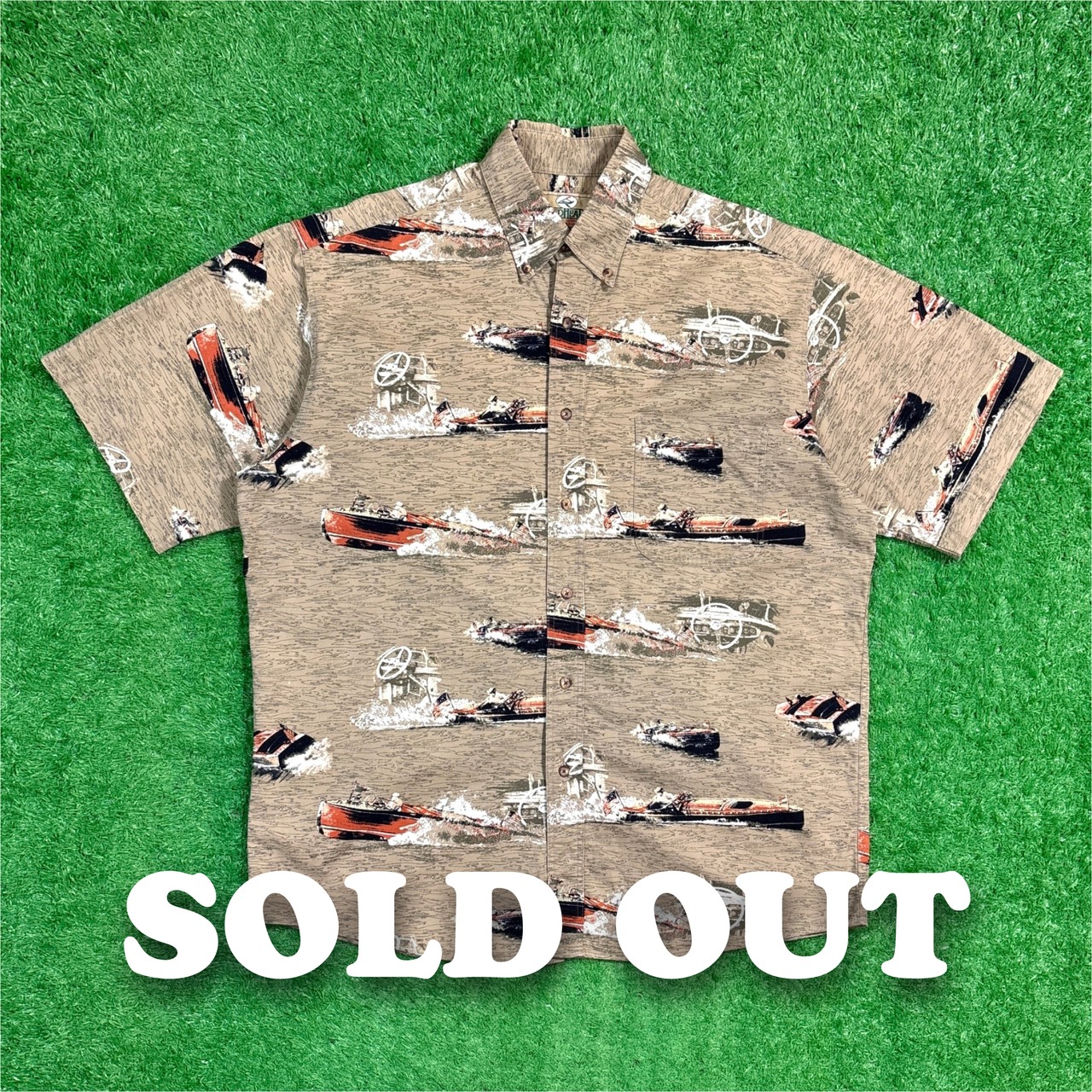 【Men's】 90s ボート イラスト 総柄 シャツ / 90年代 柄シャツ 総柄 古着 半袖 メンズ 夏 598