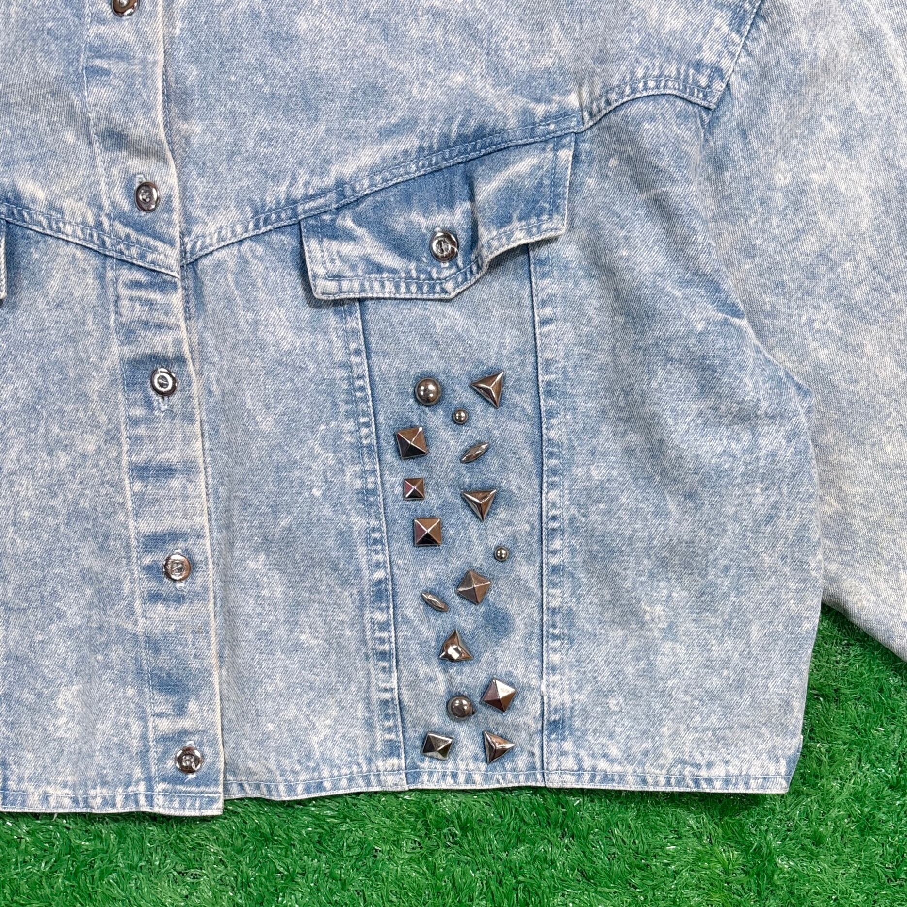 【Lady's】 90s ケミカルウォッシュ デニム シャツ ジャケット / 90年代 古着 デニムジャケット デニムシャツ ショート丈 短丈 レディース 603