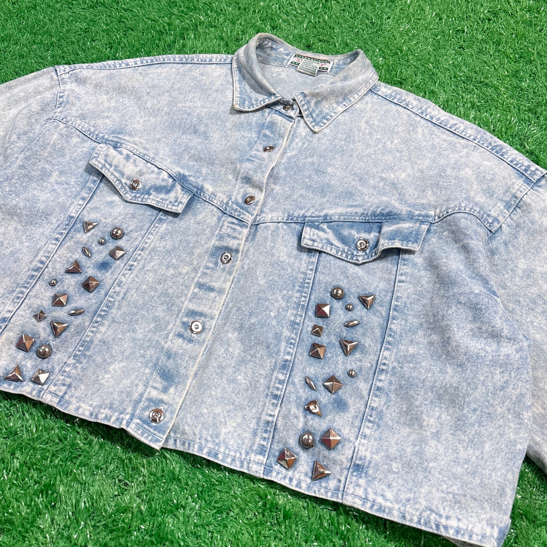 1990年代のケミカルウォッシュデニムを使ったショート丈のシャツジャケットです。