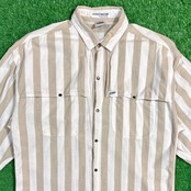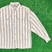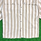 ホワイトの切り替えストライプが印象的なデザイン。両胸のポケットや袖口にはGUESSらしいスナップボタンが使われており、90sらしいアメリカンカジュアルな雰囲気を感じさせてくれる一枚です。