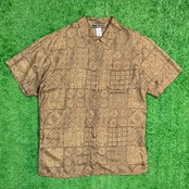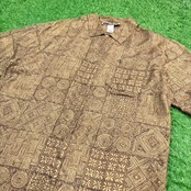【Men's】 90s アジアンモチーフ 総柄 シルク シャツ / 90年代 古着 半袖 柄シャツ メンズ 夏 大人古着 610
