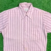【Men's】 70s Kmart 刺繍 ストライプ シャツ / 70年代 古着 ピンク 大人古着 メンズ 夏 613
