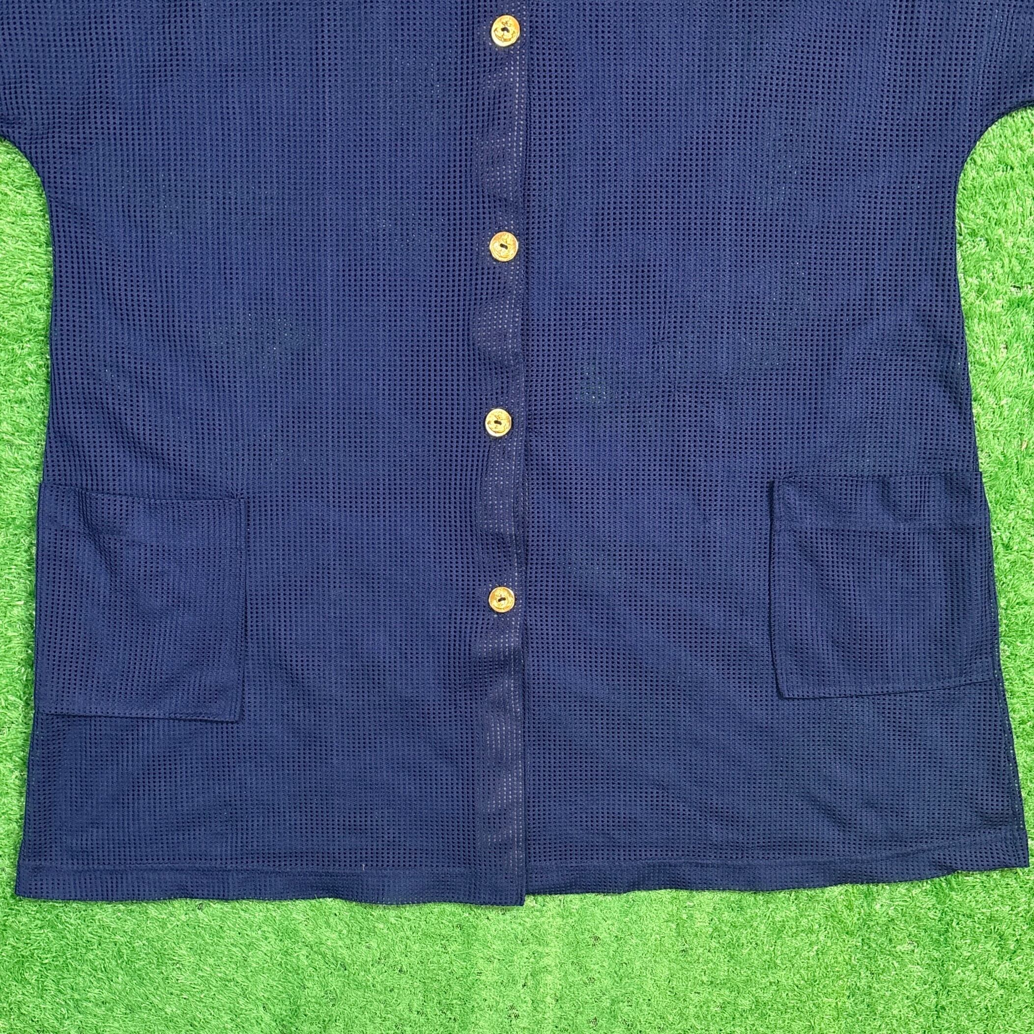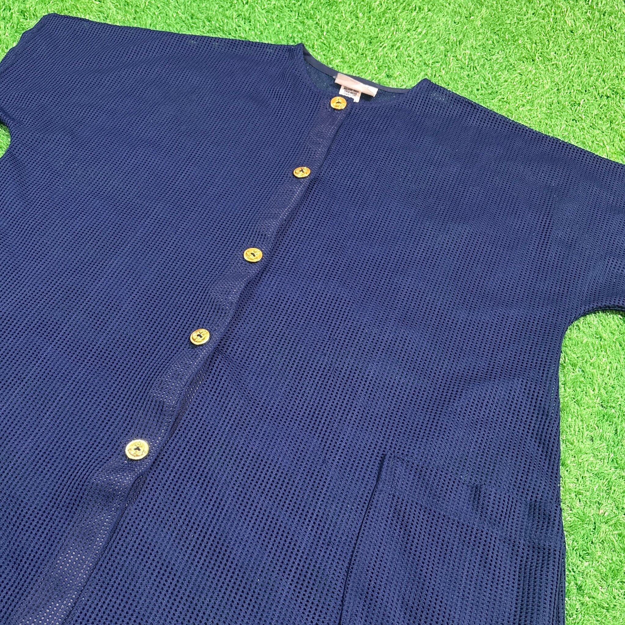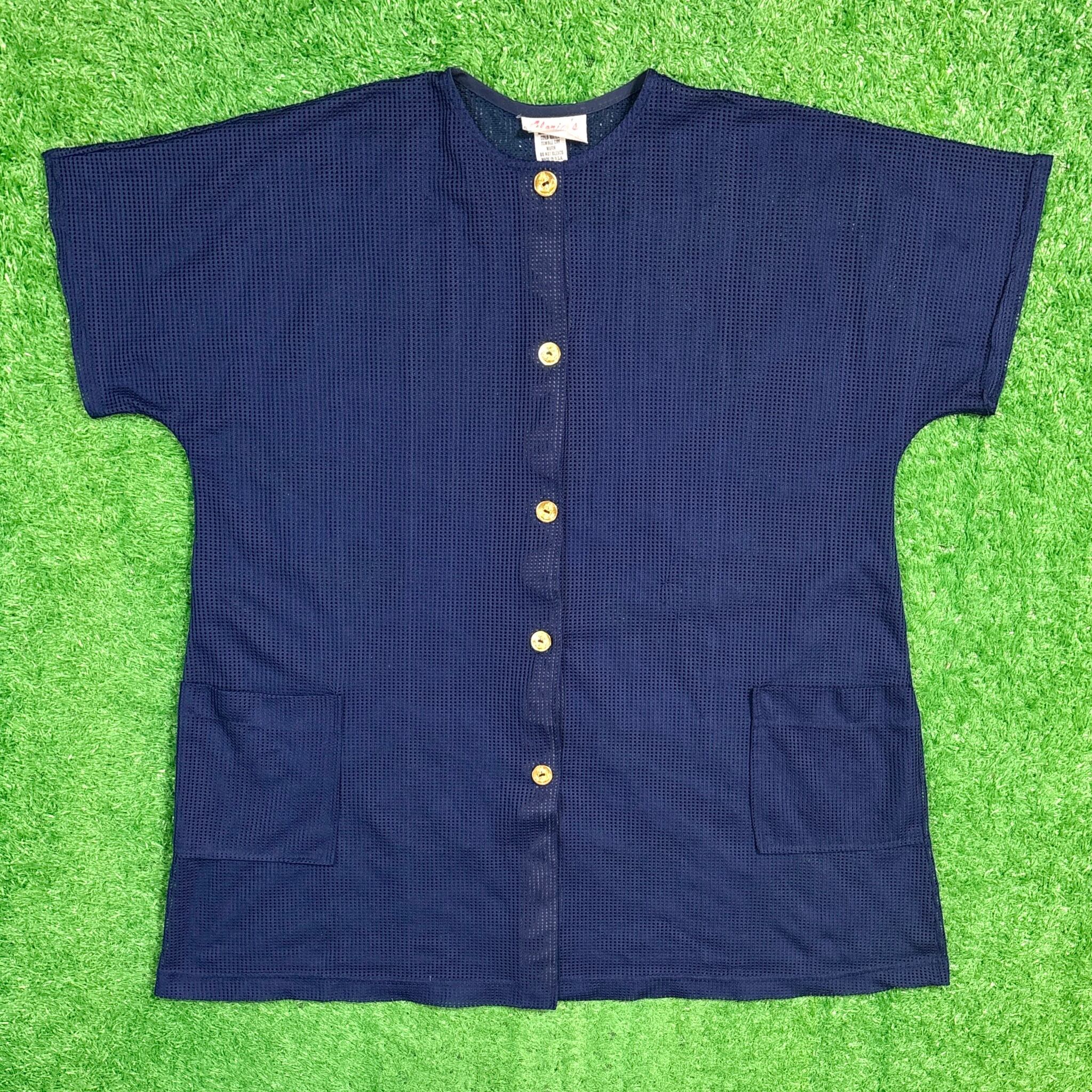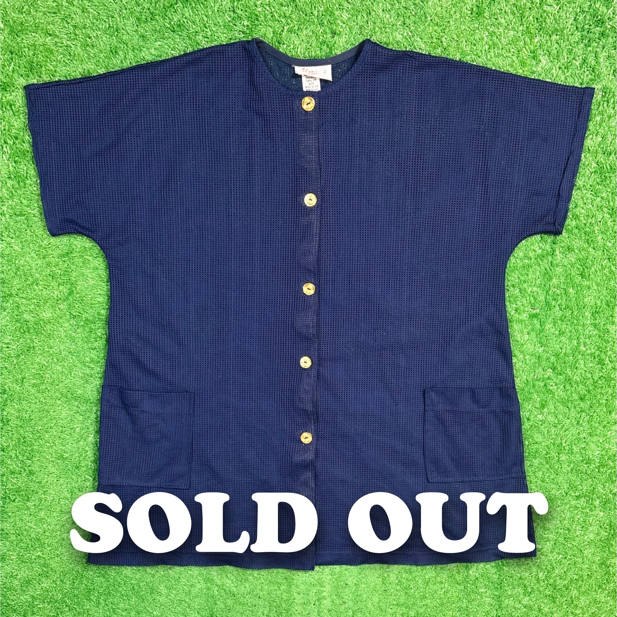 【Lady's】 80s - 90s メッシュ ノーカラー シャツ / アメリカ製 USA製 80年代 90年代 古着 ネイビー 紺 重ね着 レイヤード レディース 夏 大人古着 622