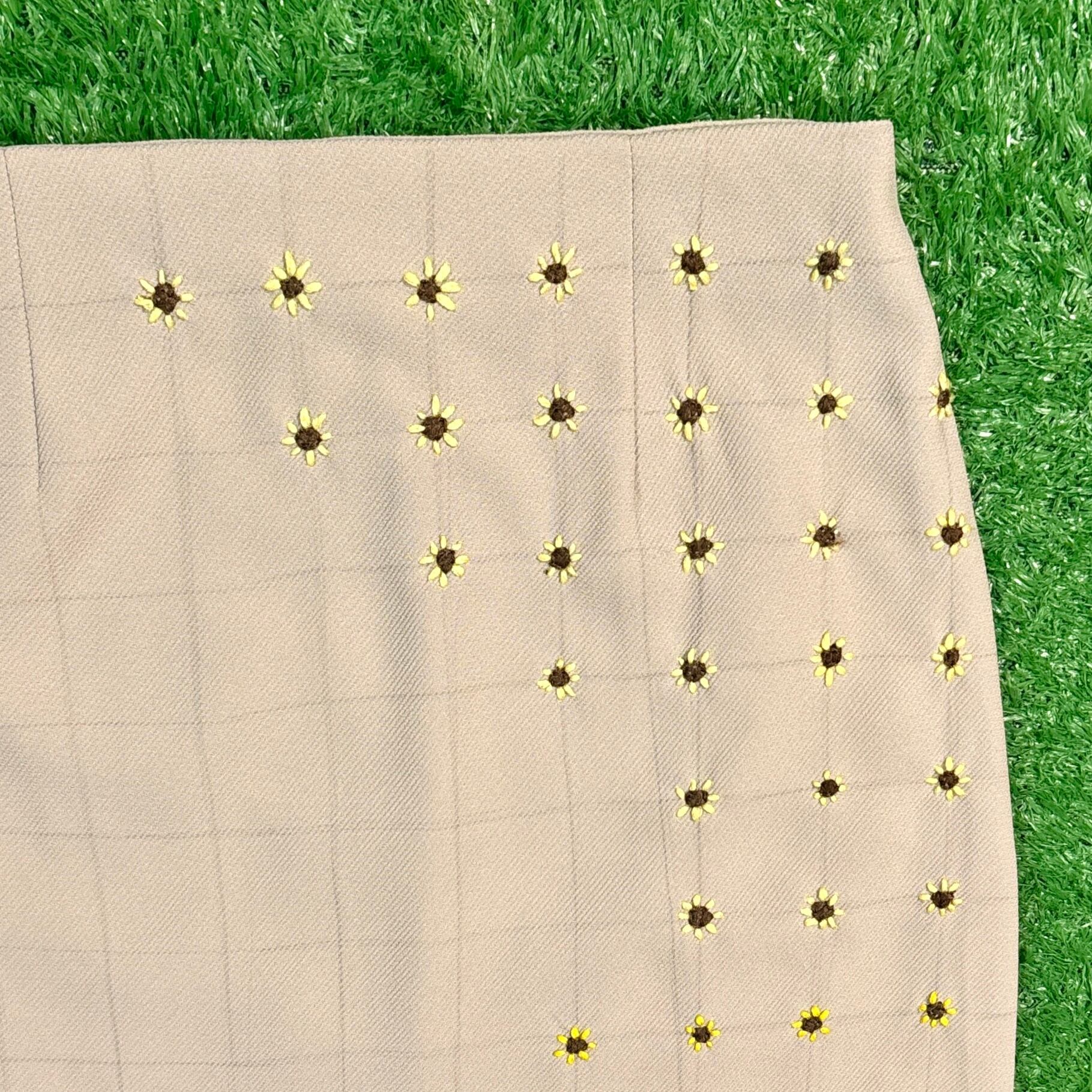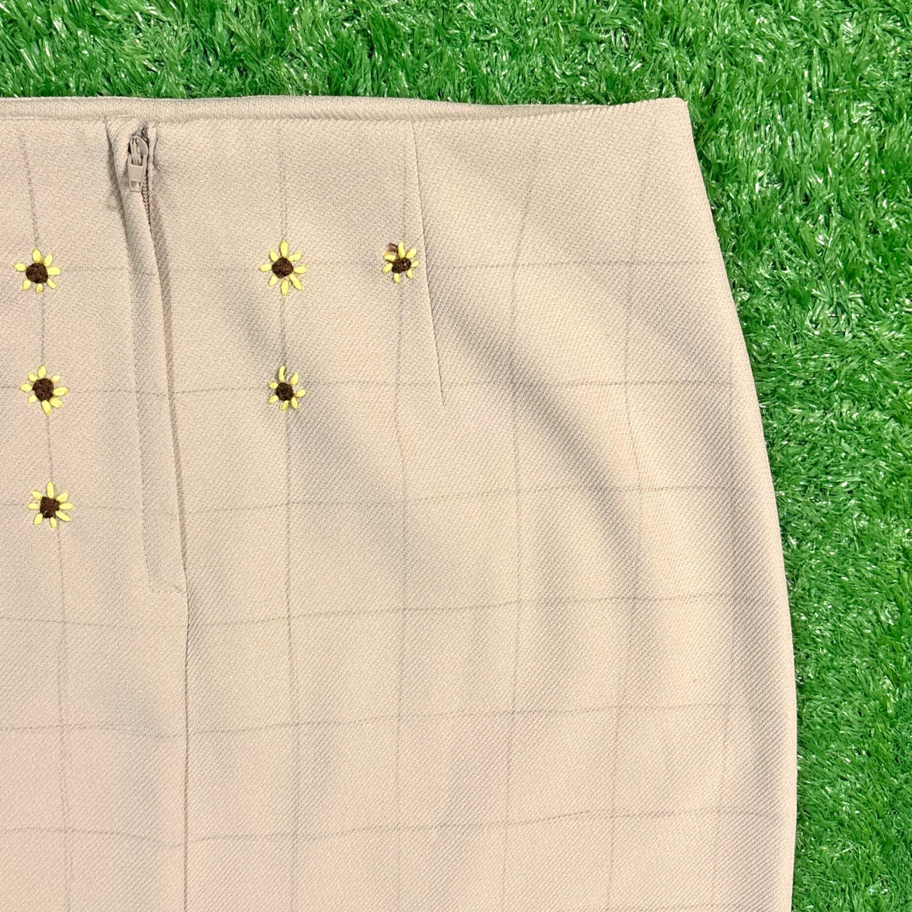【Lady's】 お花 刺繍 台形 ミニ スカート / アメリカ製 USA製 スカート ベージュ ミニスカート 古着 レディース 625