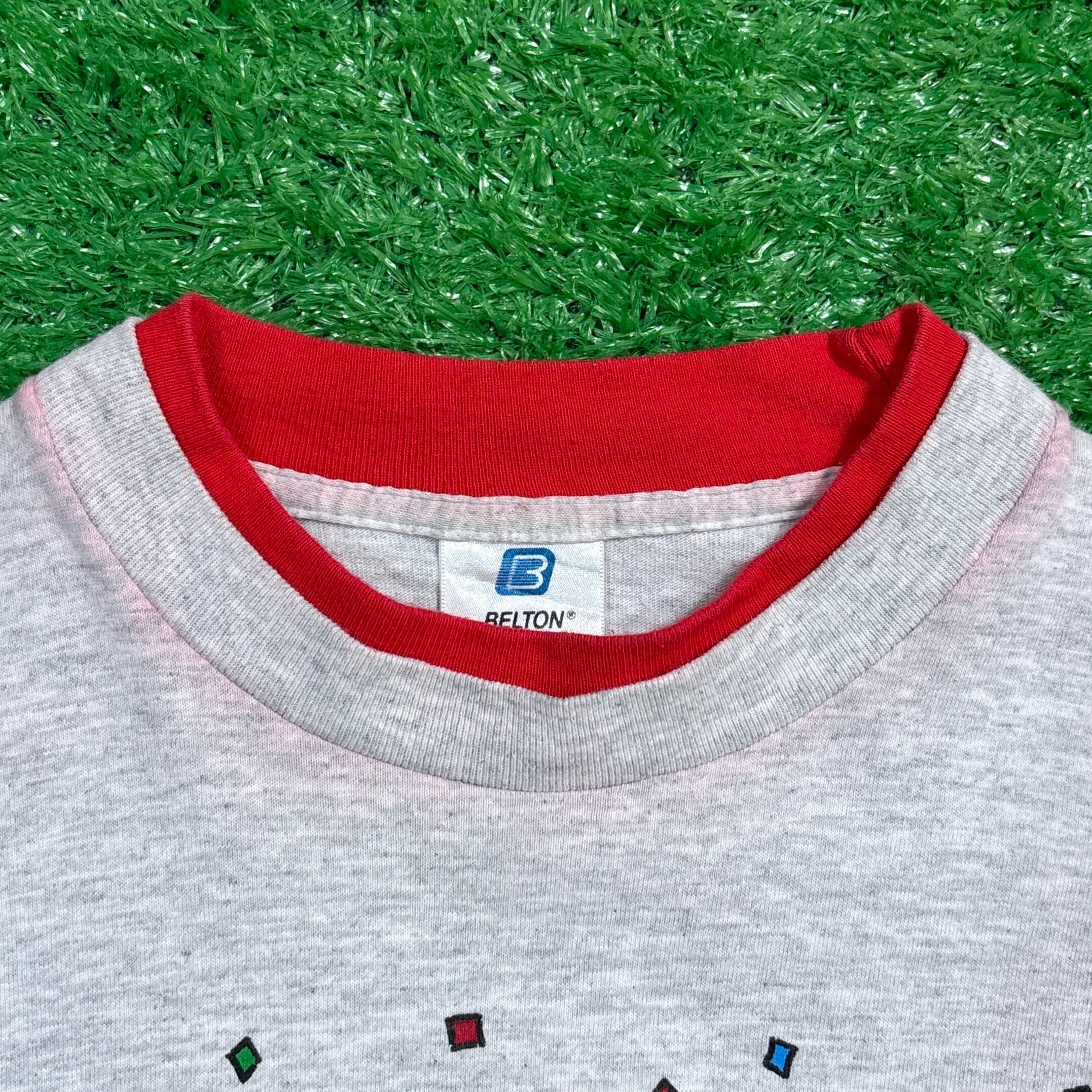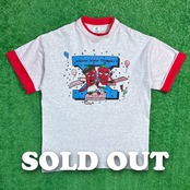 フロントにはアリゾナらしい唐辛子のキャラクターが描かれたユニークなイラストがプリントされ、イベントの楽しげな雰囲気を表現。バックにはシンプルに「ARIZONA」の文字が大きく入っており、フロントとのギャップも魅力です。袖と襟に赤の切り替えが入ったフェイクレイヤード仕様で、90年代らしい遊び心あるデザインになっています。