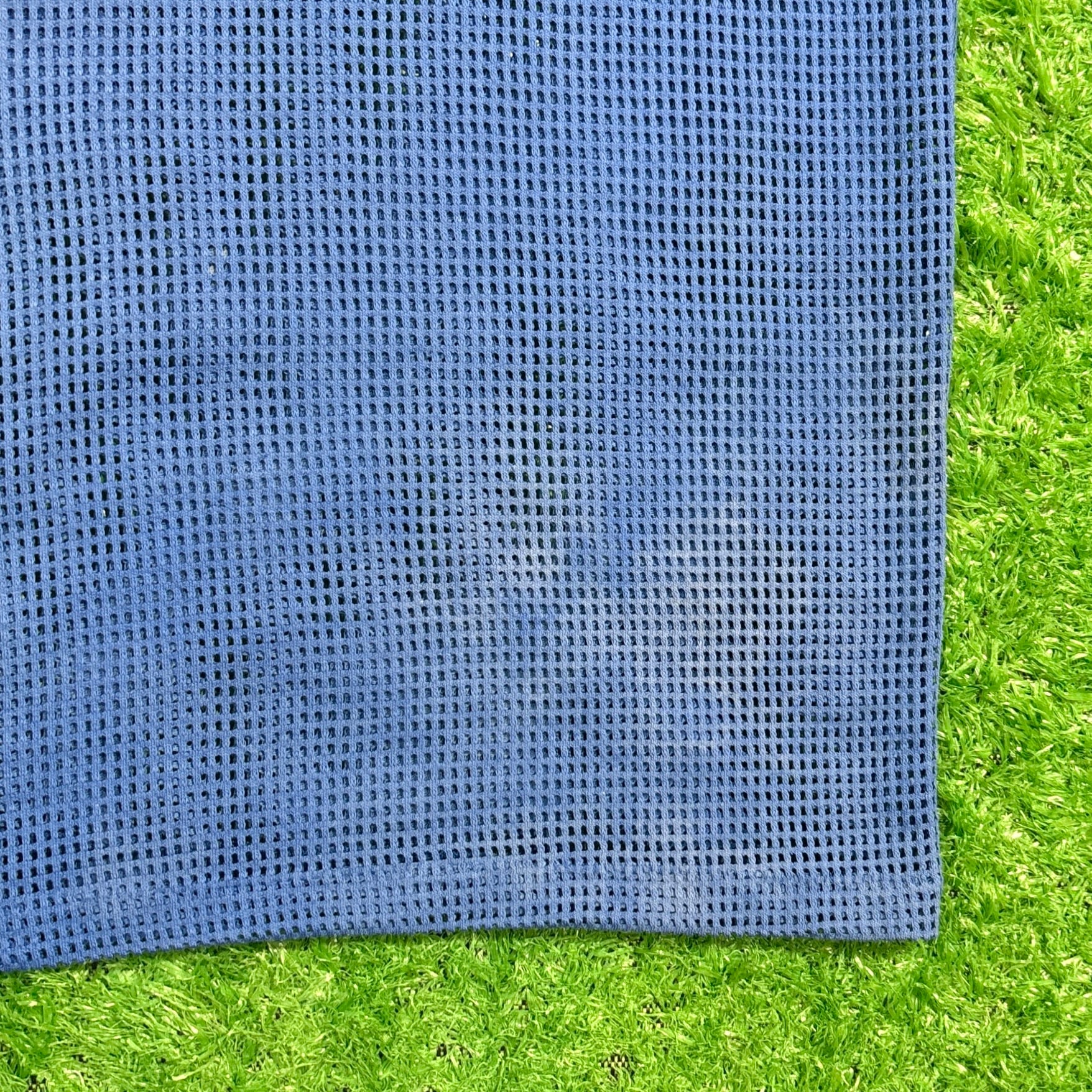 メッシュ素材で仕立てられており、涼しげで軽やかな着心地が魅力。ブルーのカラーと細かいメッシュ編みが、夏らしい爽やかな印象を与えます。肩から袖にかけて一続きになったフレンチスリーブが女性らしいシルエットを演出し、通気性の良さと快適さを両立しています。