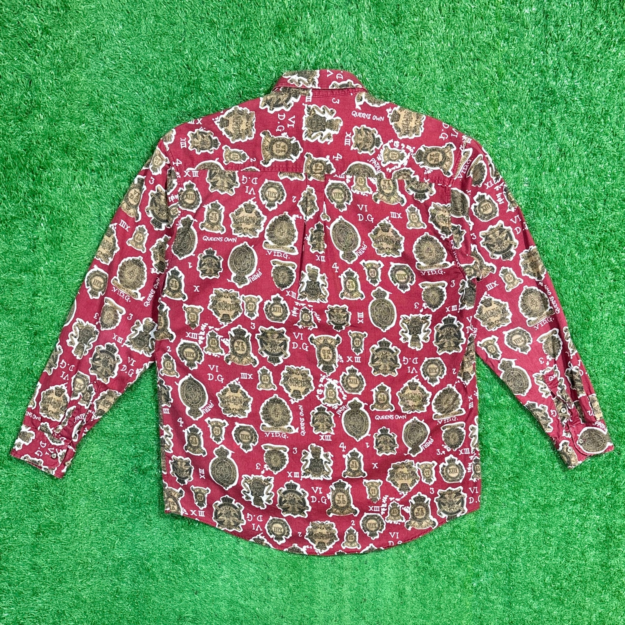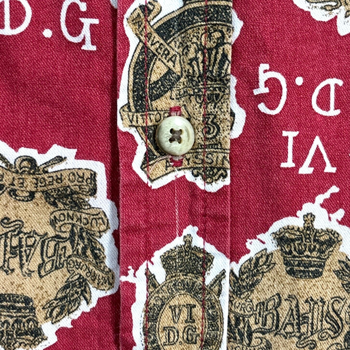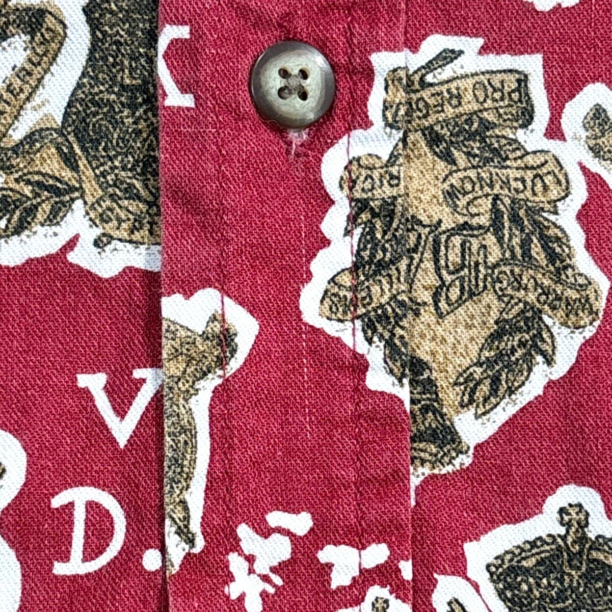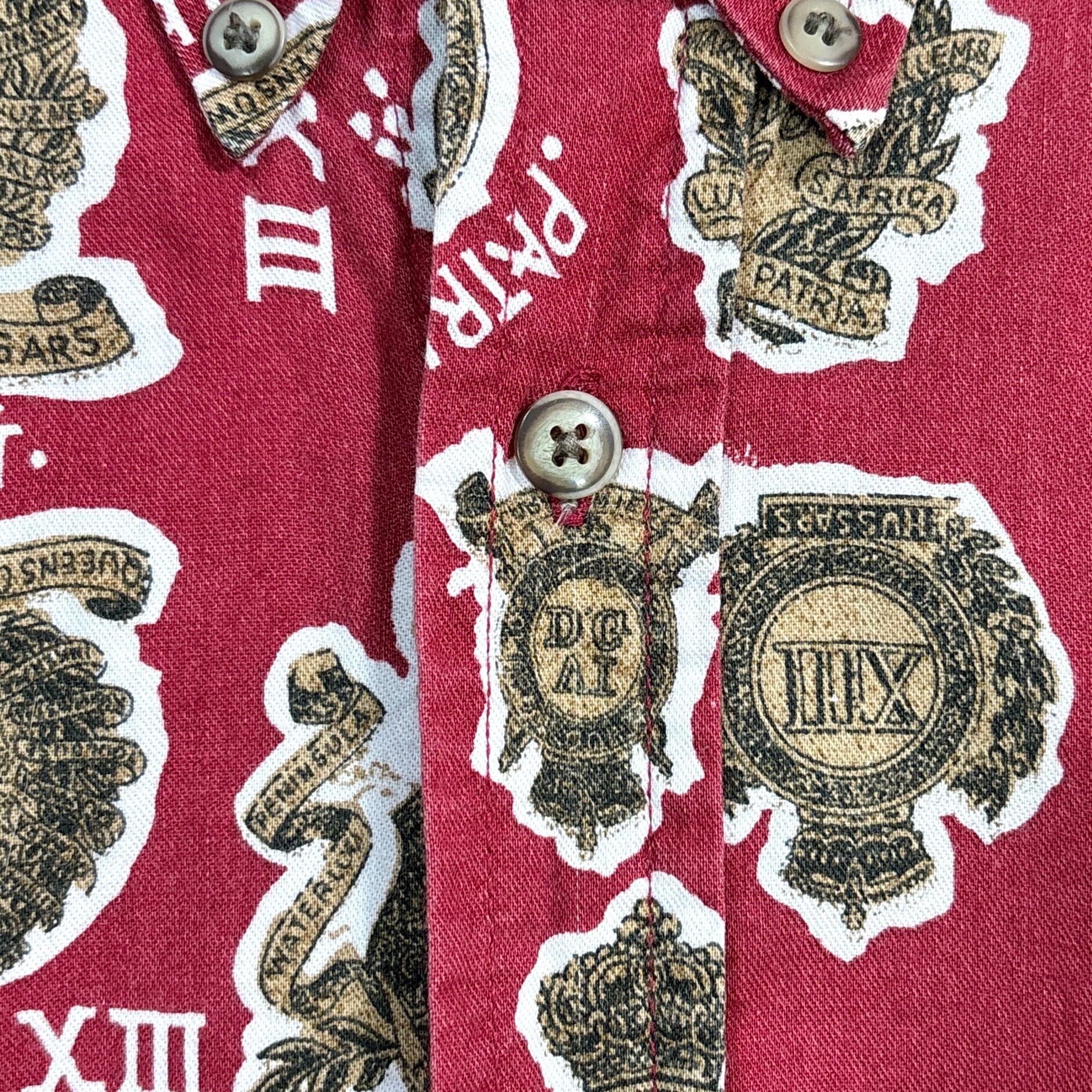 【Men's】 90s - 00s エンブレム柄 ボタンダウンシャツ / 90年代 00年代 シャツ 長袖 長袖シャツ 総柄 柄シャツ 赤 レッド メンズ 644