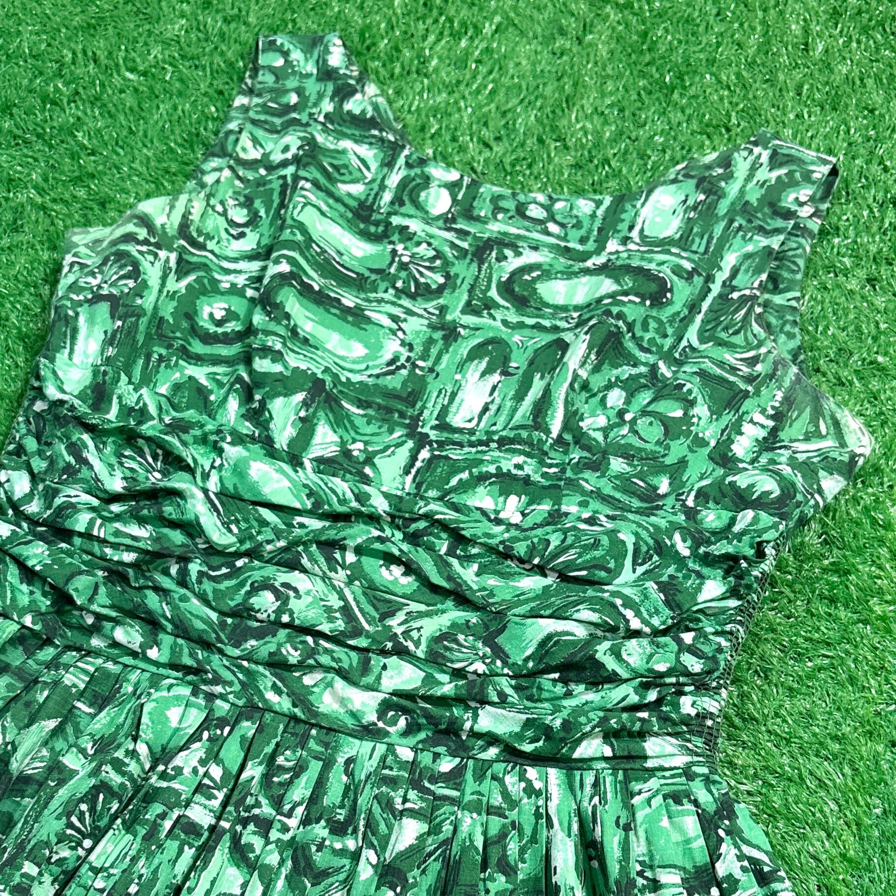 【Lady's】 60s - 70s アート柄 ノースリーブ ワンピース / 60年代 70年代 ワンピ グリーン レディース レトロ 647