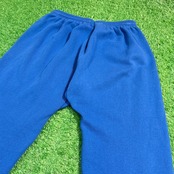 鮮やかなブルーカラーが目を引くシンプルな一本で、柔らかいスウェット生地が快適な穿き心地です。ウエストは紐で調節可能で、裾にもリブがついたクラシックなデザインです。