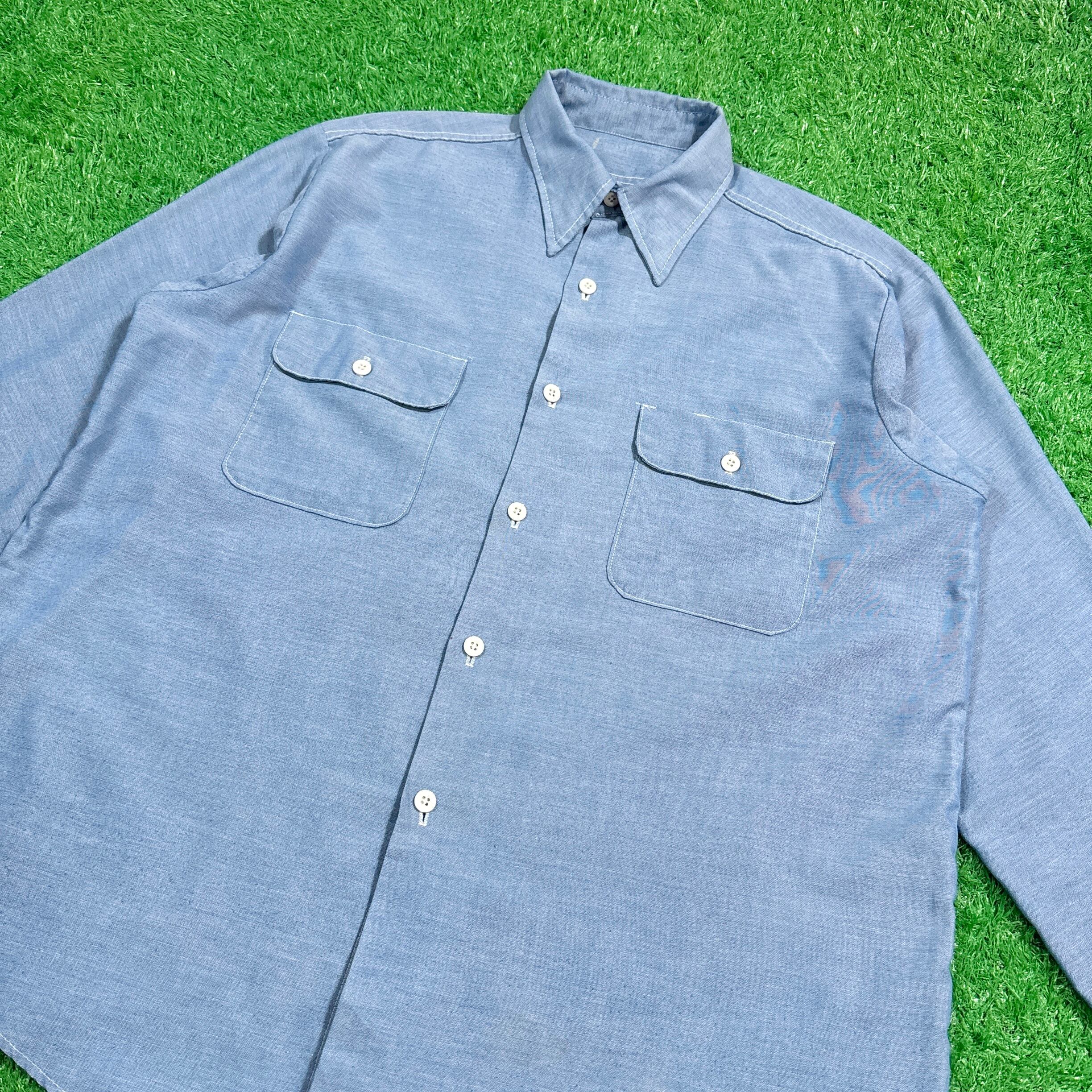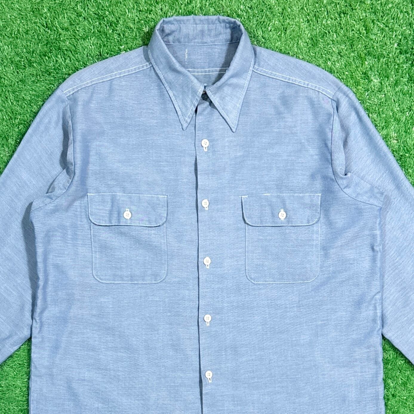 【Men's】 70s シャンブレー シャツ / 70年代 ワークシャツ 長袖 シャンブレーシャツ メンズ 大人古着 663