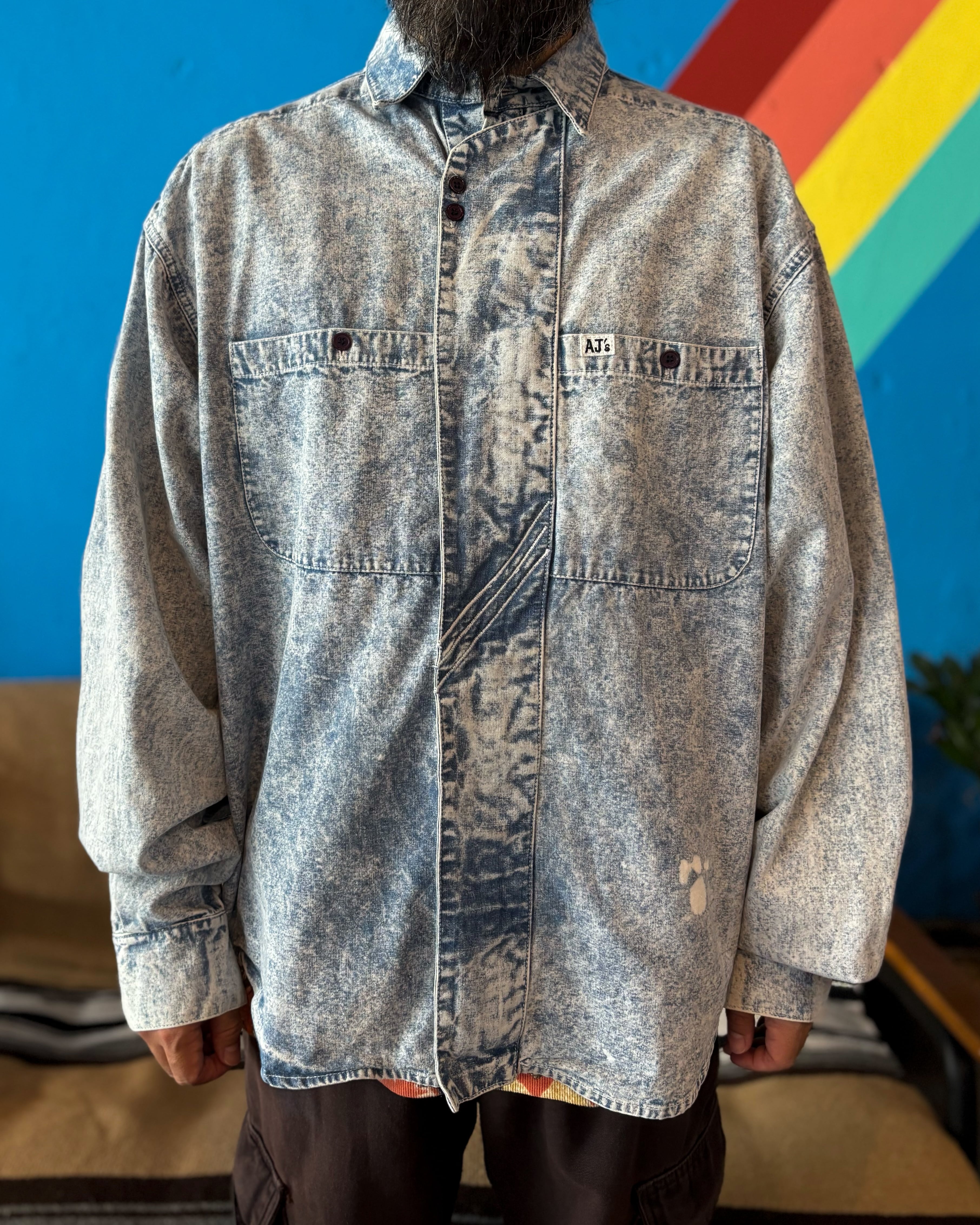 90年代らしい存在感を放つ、ケミカルウォッシュのデニムシャツジャケット。