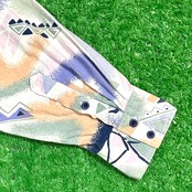 ホワイトベースにブルー・オレンジ・グリーンなどを組み合わせた幾何学的でネイティブ感のあるアート柄が存在感抜群。Roperらしいウエスタンテイストを感じさせる一枚で、個性的ながらも上品な雰囲気を楽しめるアイテムです。程よいハリ感のあるコットン素材で、季節を問わず活躍してくれます。