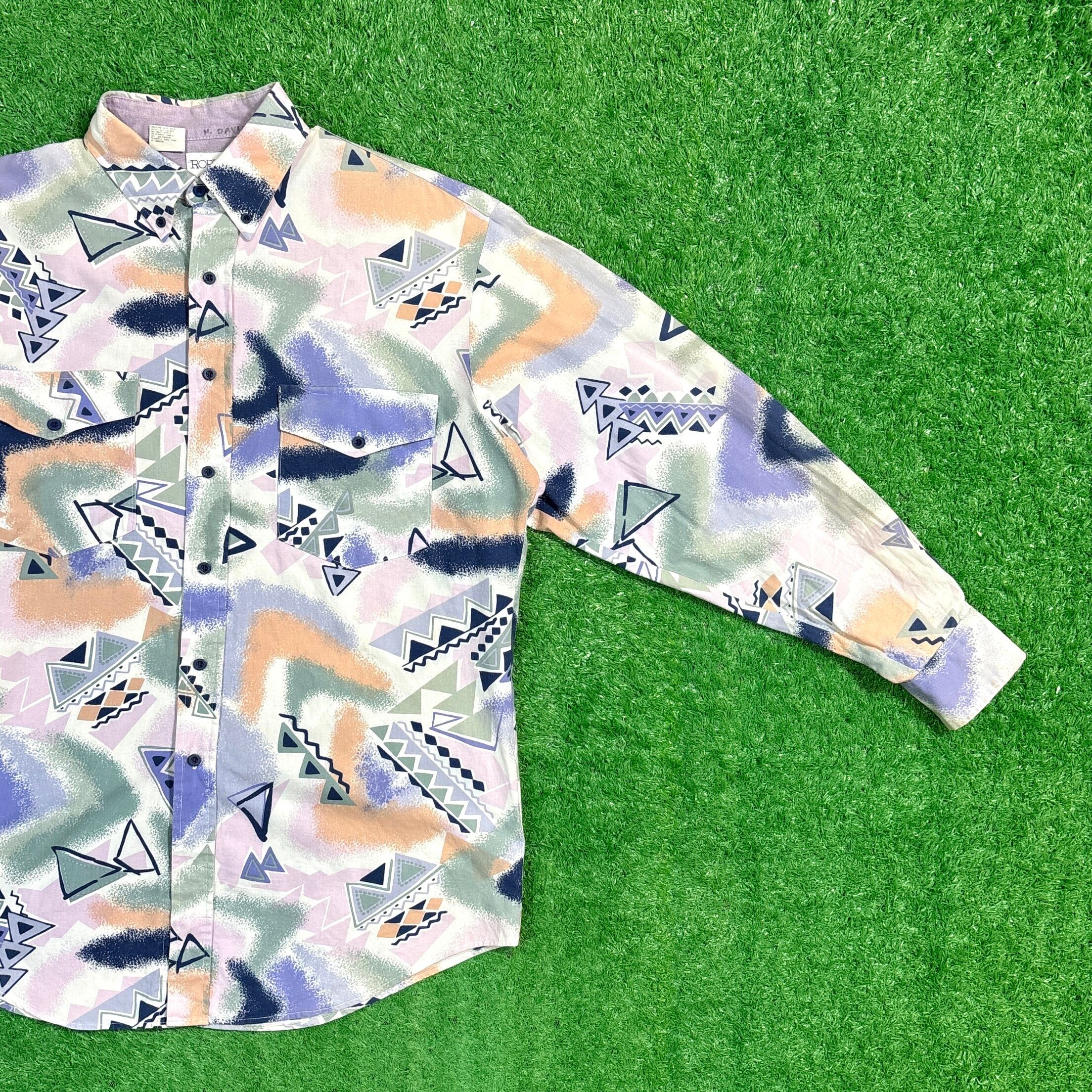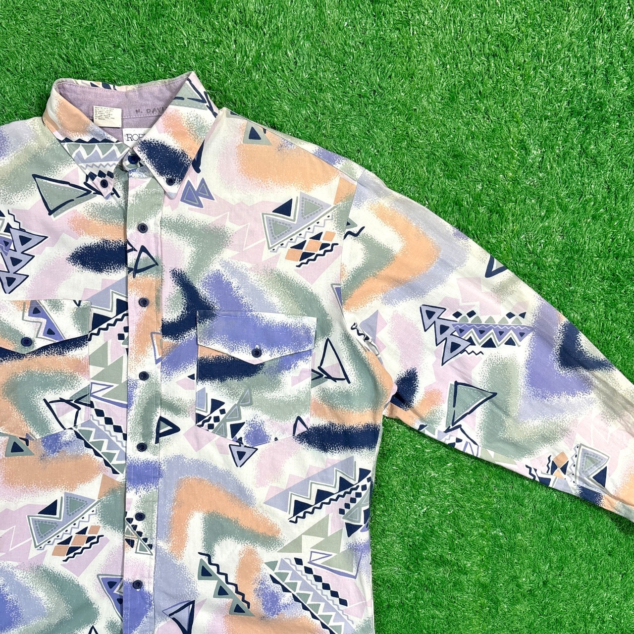 【Men's】 90s Roper ネイティブ アート柄 長袖シャツ / アメリカ製 USA製 90年代 シャツ 総柄 柄シャツ 686