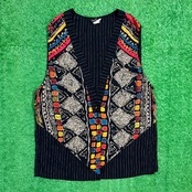 【Lady's】 90s ボヘミアン デザイン レーヨン ロング ベスト / 90年代 古着 レディース ベスト 総柄 エスニック 692