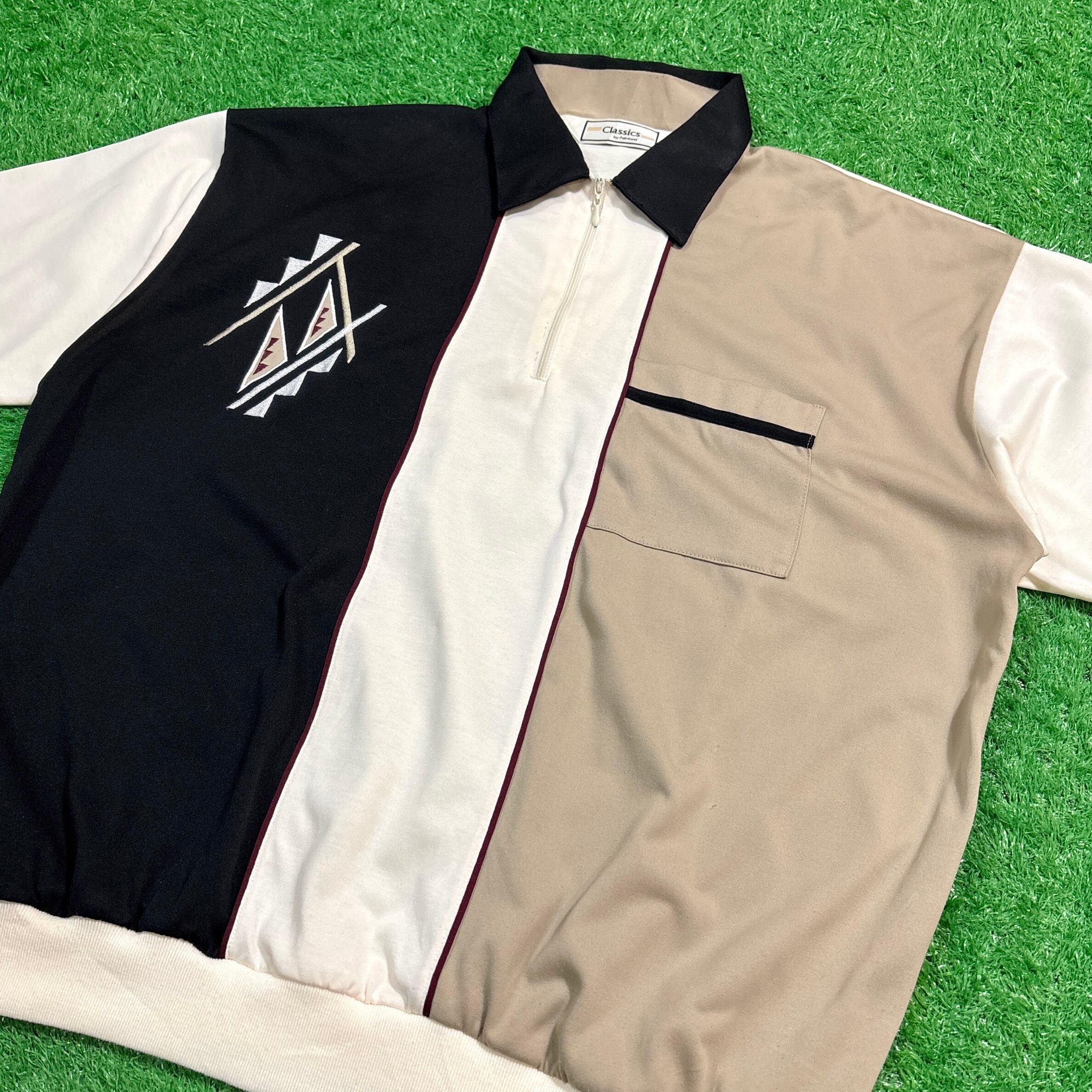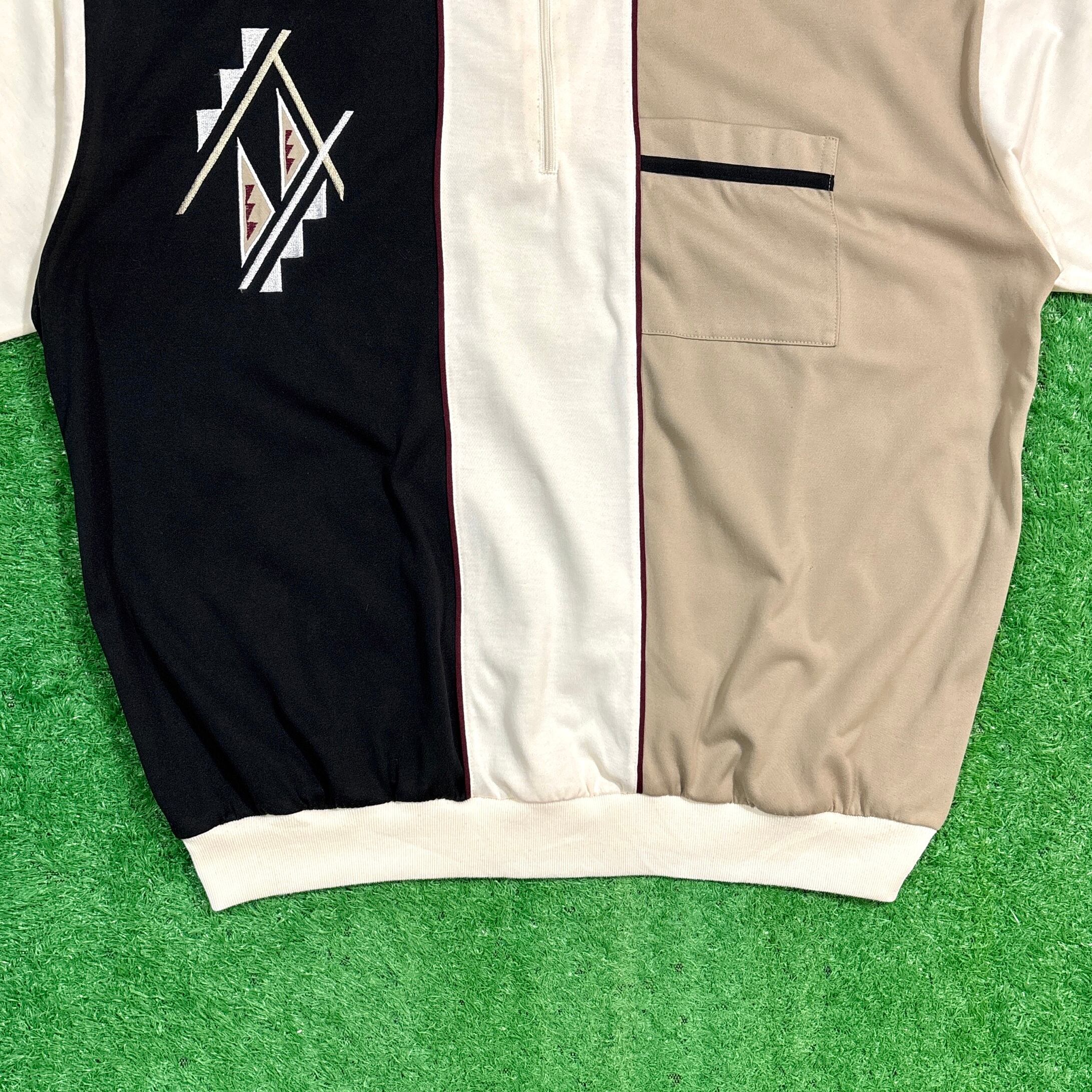 【Men's】 90s ポリエステル コットン 切り返し ハーフジップ トップス / 90年代 古着 シャツ 半袖 大人古着 メンズ 夏 698