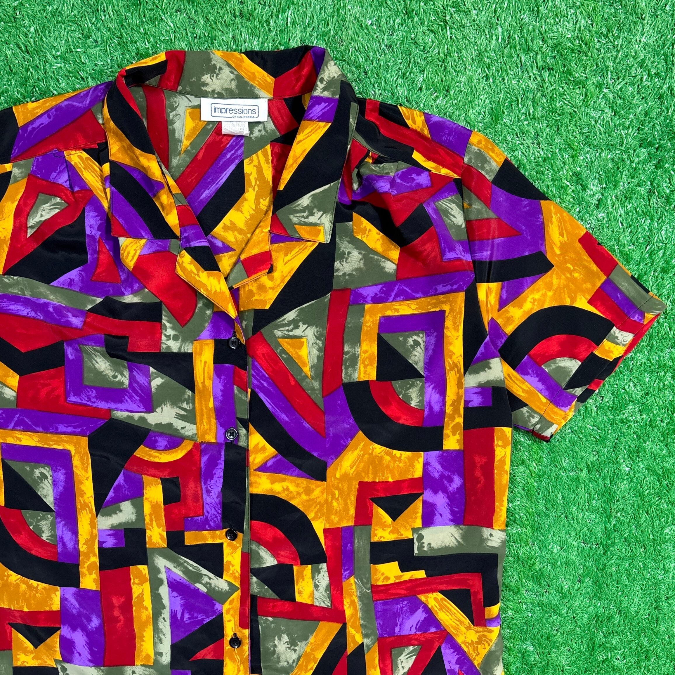 1980年代の幾何学模様ポリエステルシャツです。
